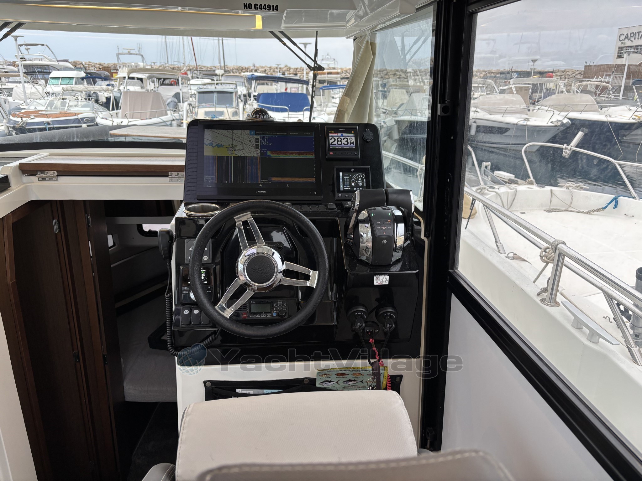 L’électronique est complète avec un combiné GPS / sondeur Garmin avec cartographie, un radar Garmin Fantom 18, ainsi qu’une VHF fixe avec antenne, offrant une navigation sécurisée et performante.