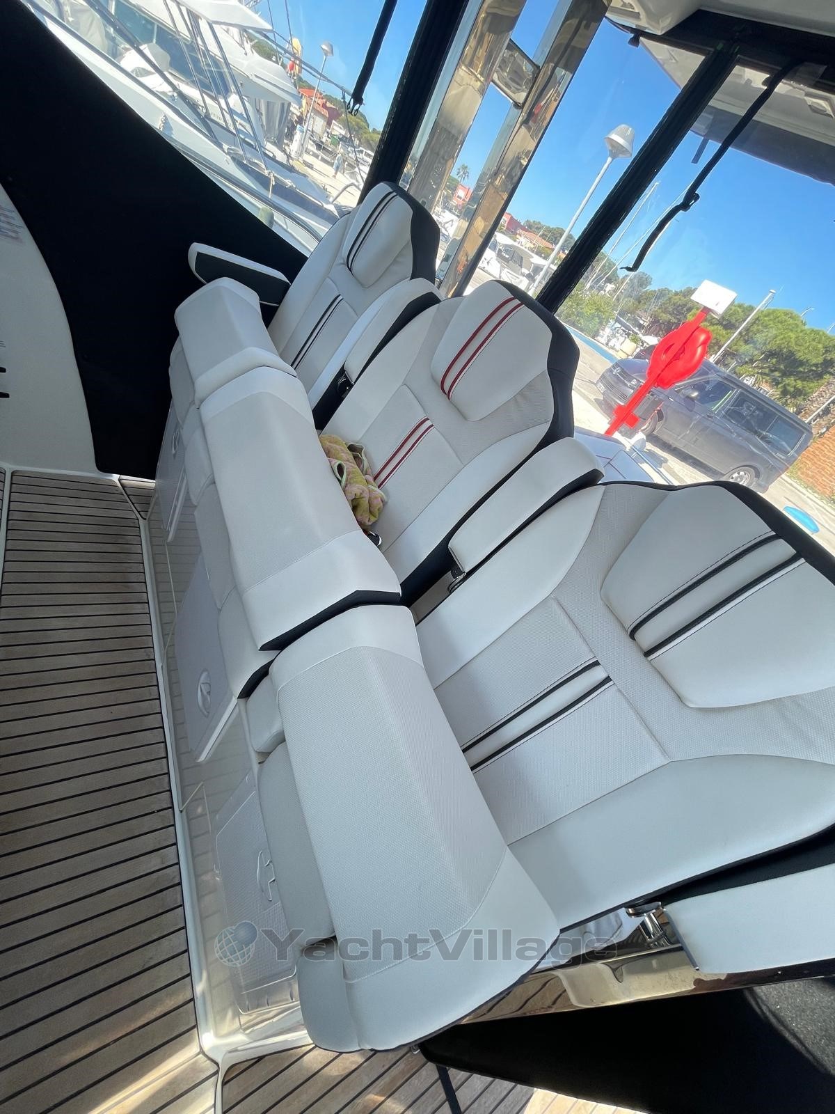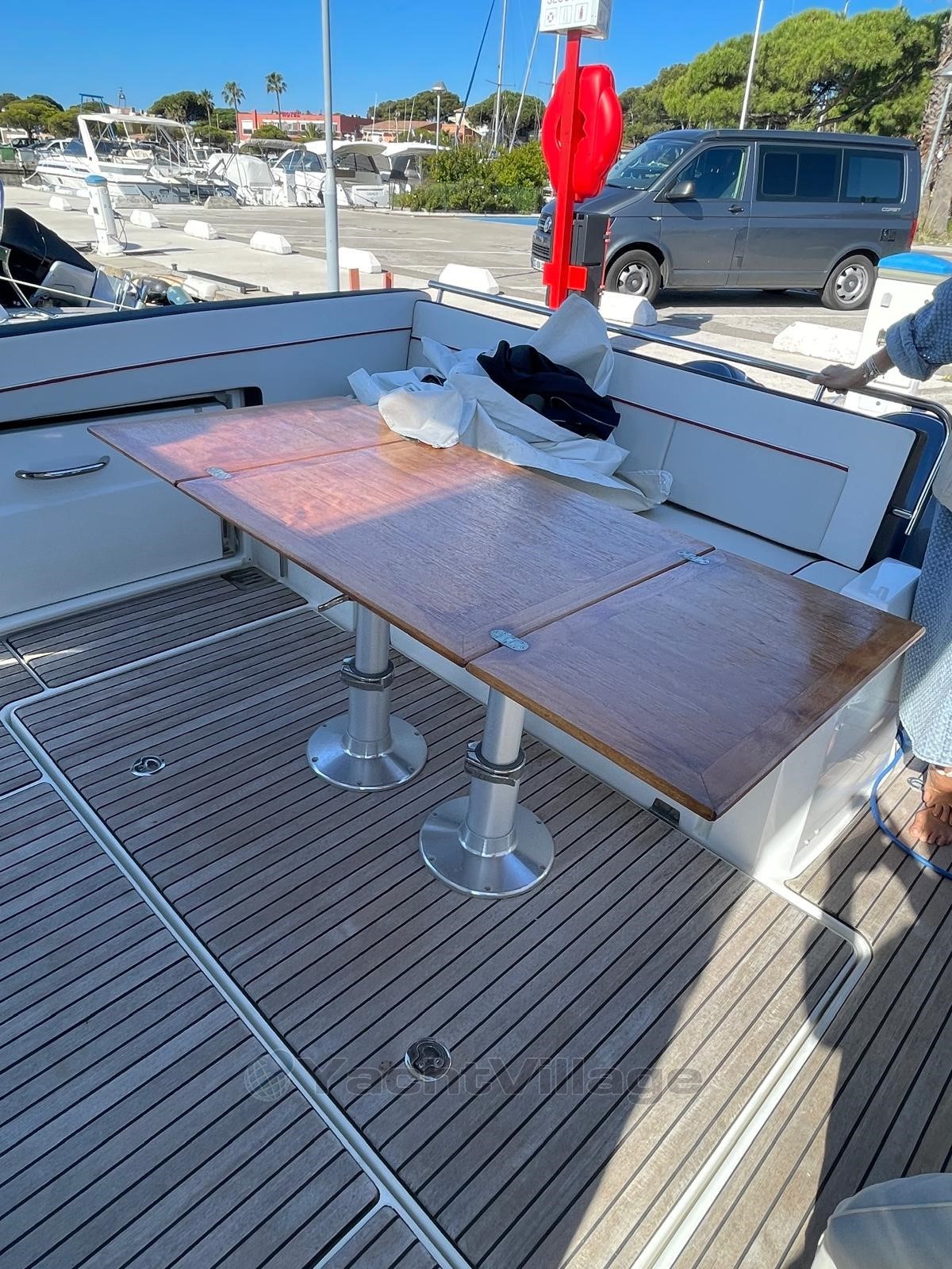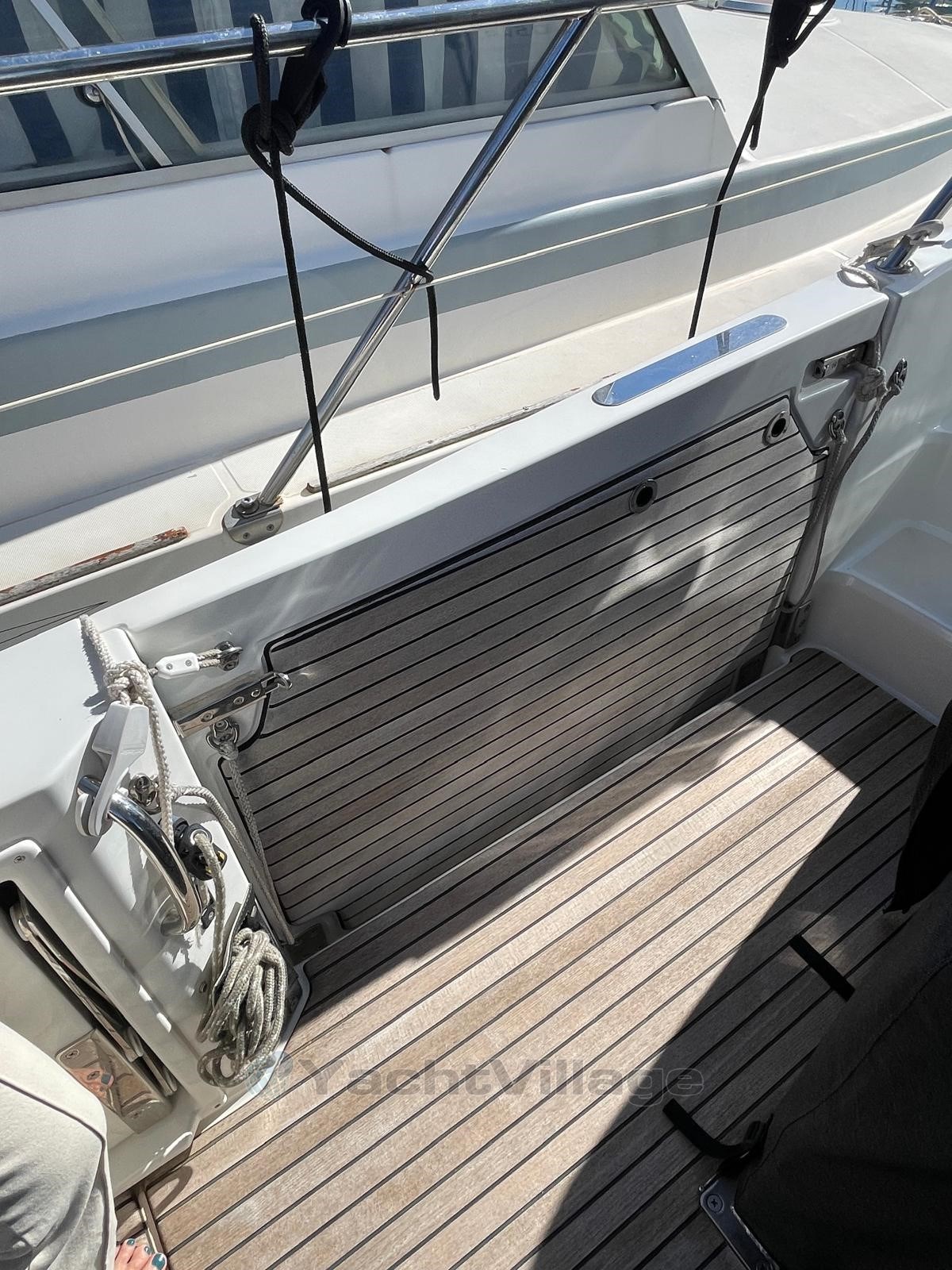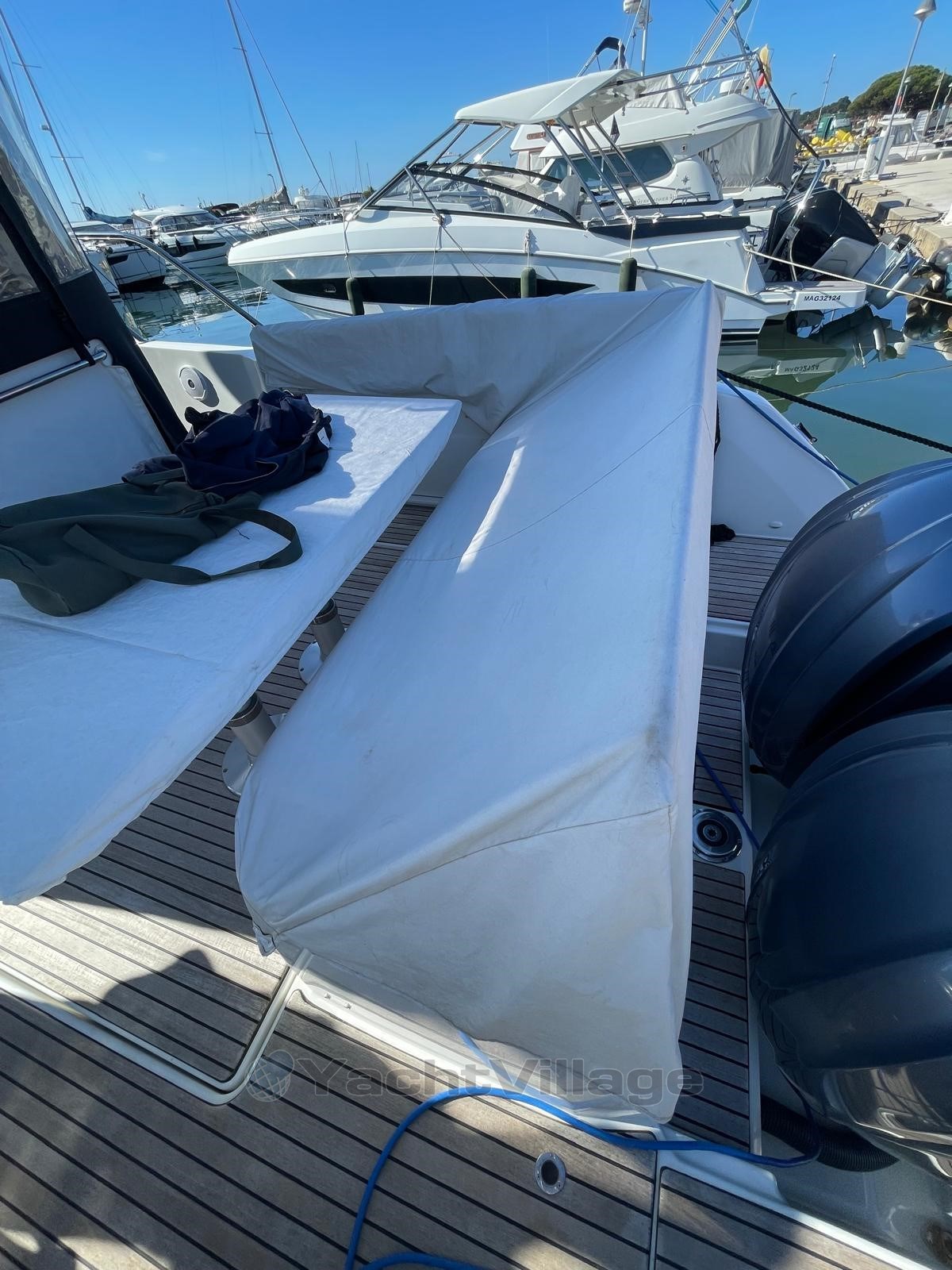 Configurazione ideale per crociere ed escursioni giornaliere, questa barca offre comfort, potenza e attrezzature di alta gamma. , due frigoriferi (interni e pozzetto), una plancha esterna, un ampio salone del pozzetto convertibile, zona prendisole a prua, cabina doppia chiusa con cuccetta aggiuntiva, bagno con wc e doccia, plancia di comando attrezzata, plotter GPS, VHF, salpa ancora elettrico, flap, tendalino parasole, doccia in pozzetto, piattaforma da bagno, tappezzeria in ottime condizioni,