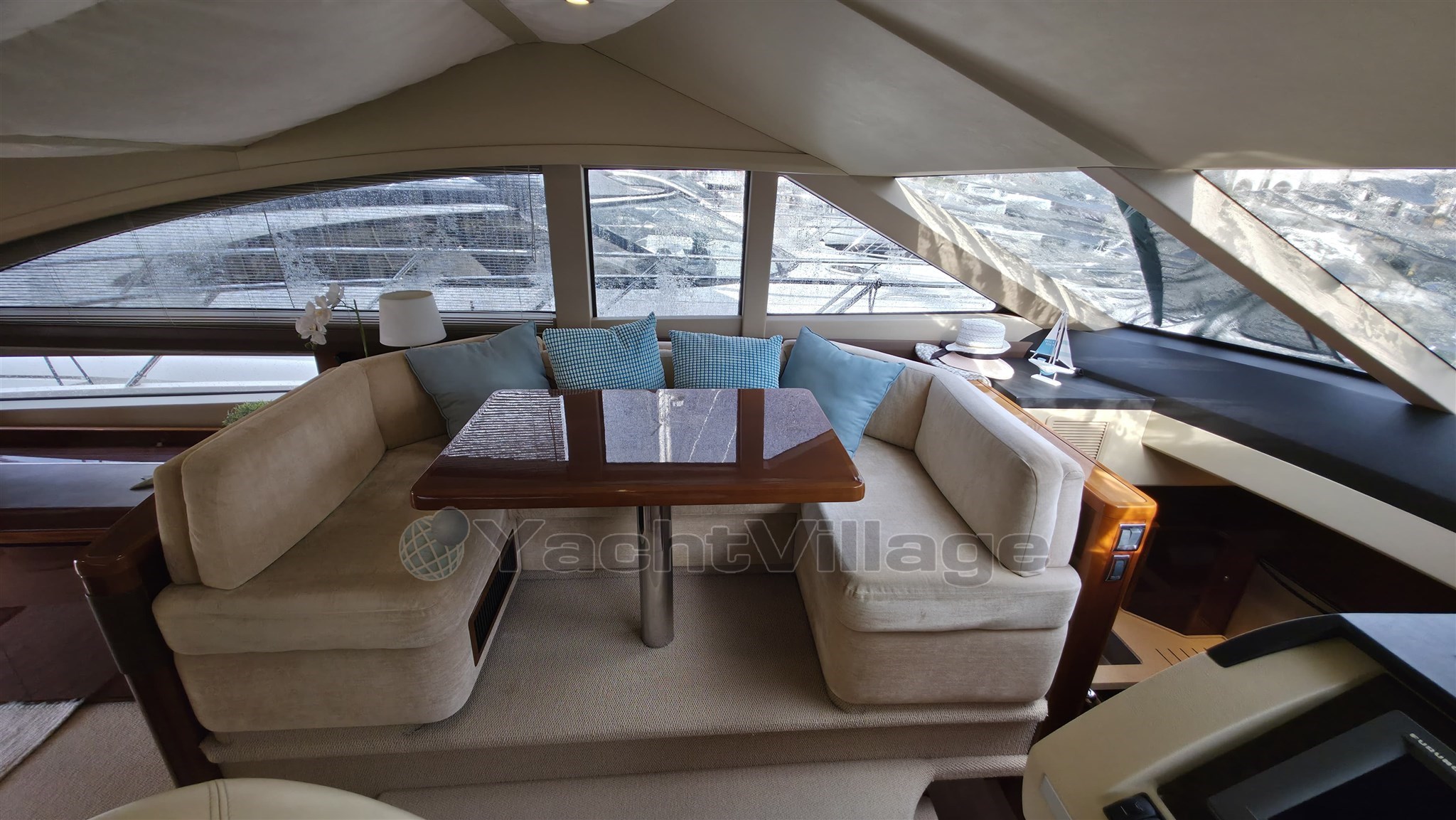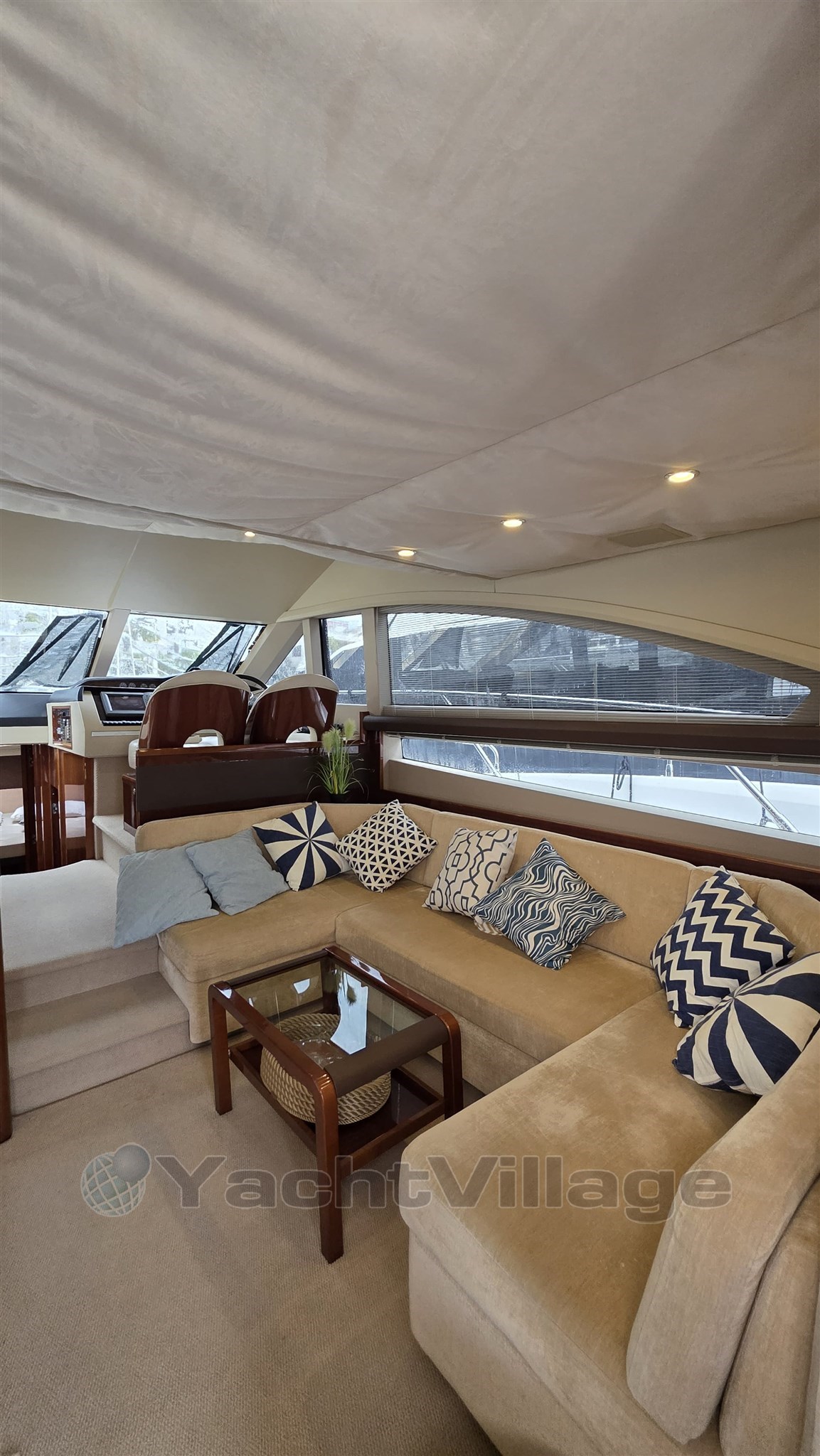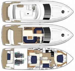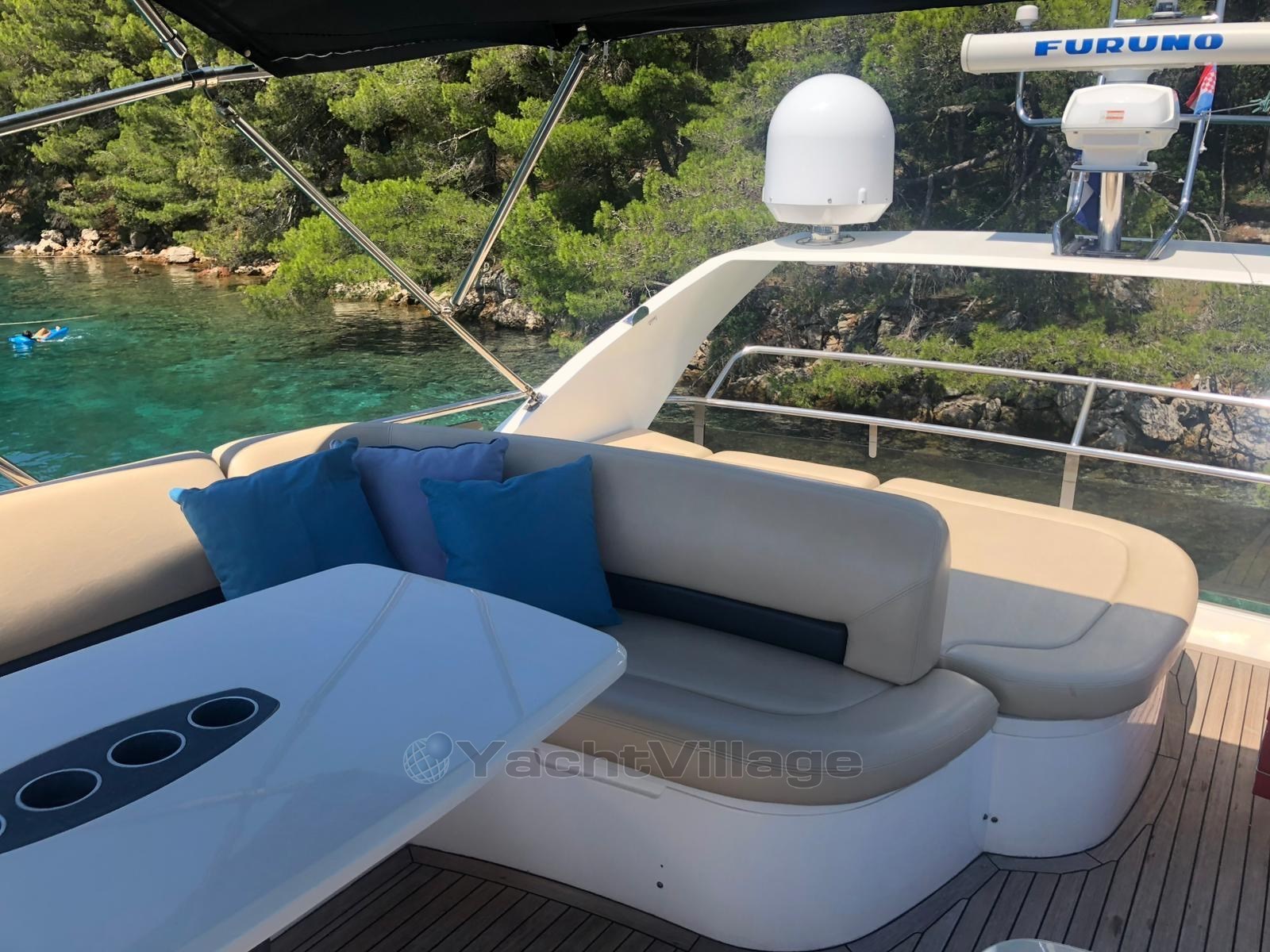 Salotto, cambusa, dinette, 2 bagni, cabina di pilotaggio, flybridge