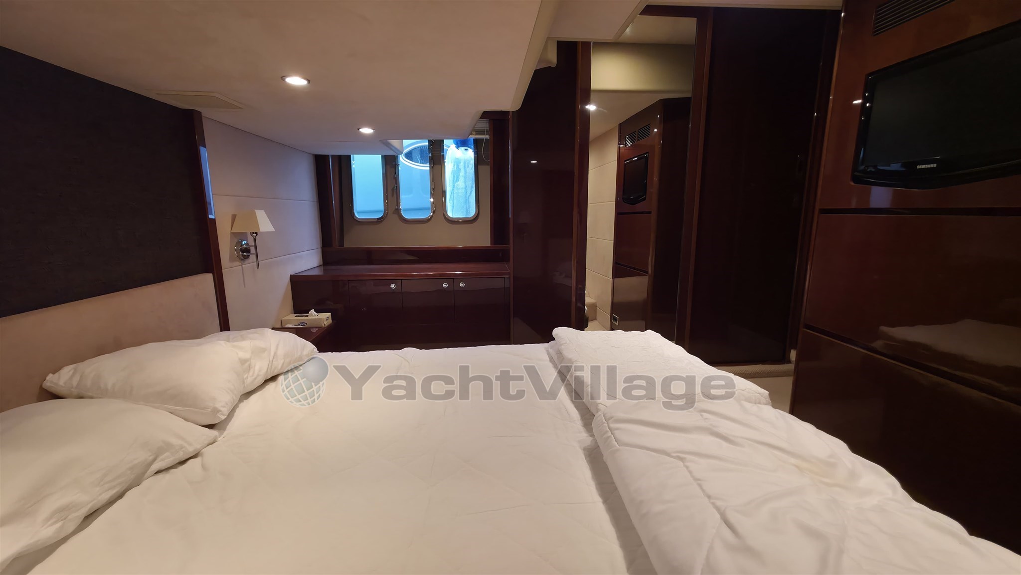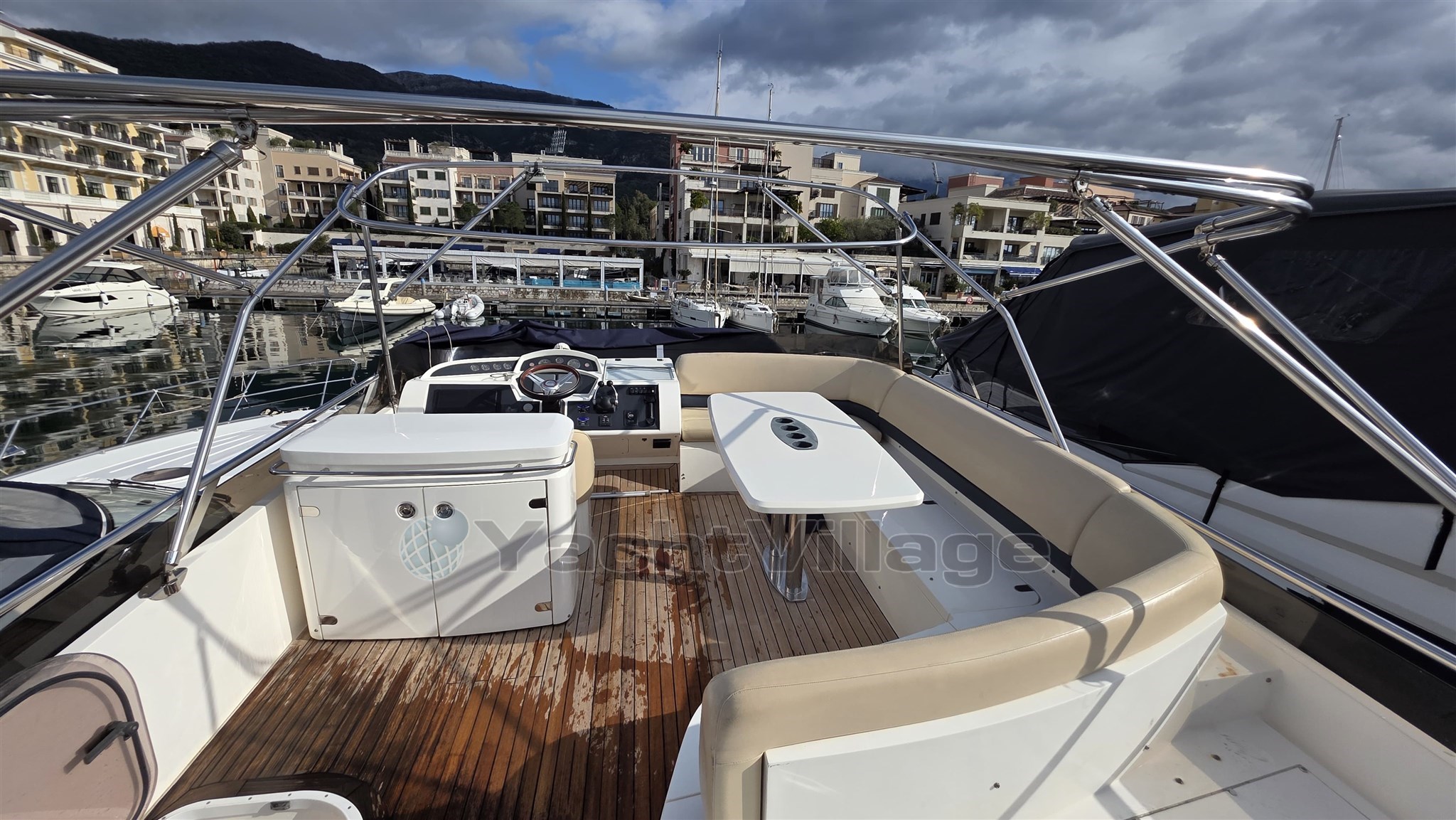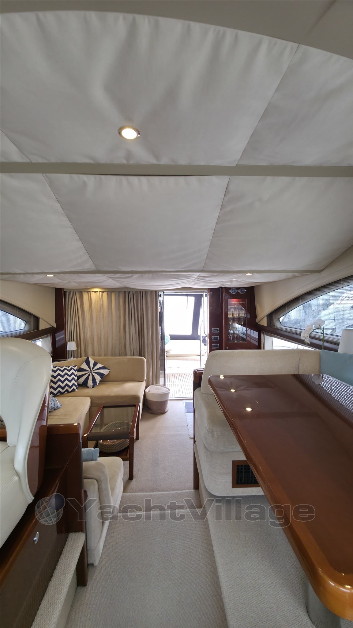 Salotto, cambusa, dinette, 2 bagni, cabina di pilotaggio, flybridge