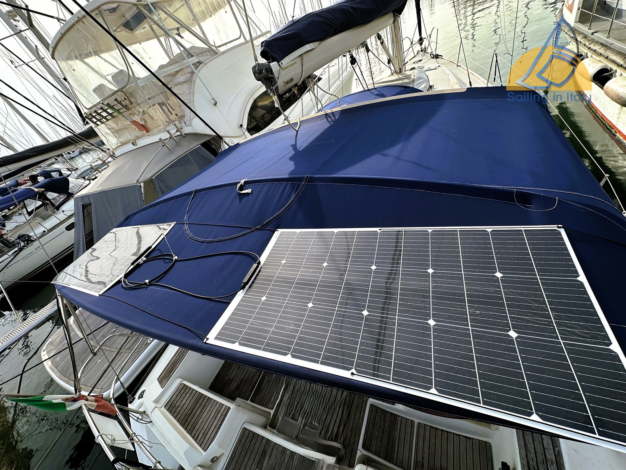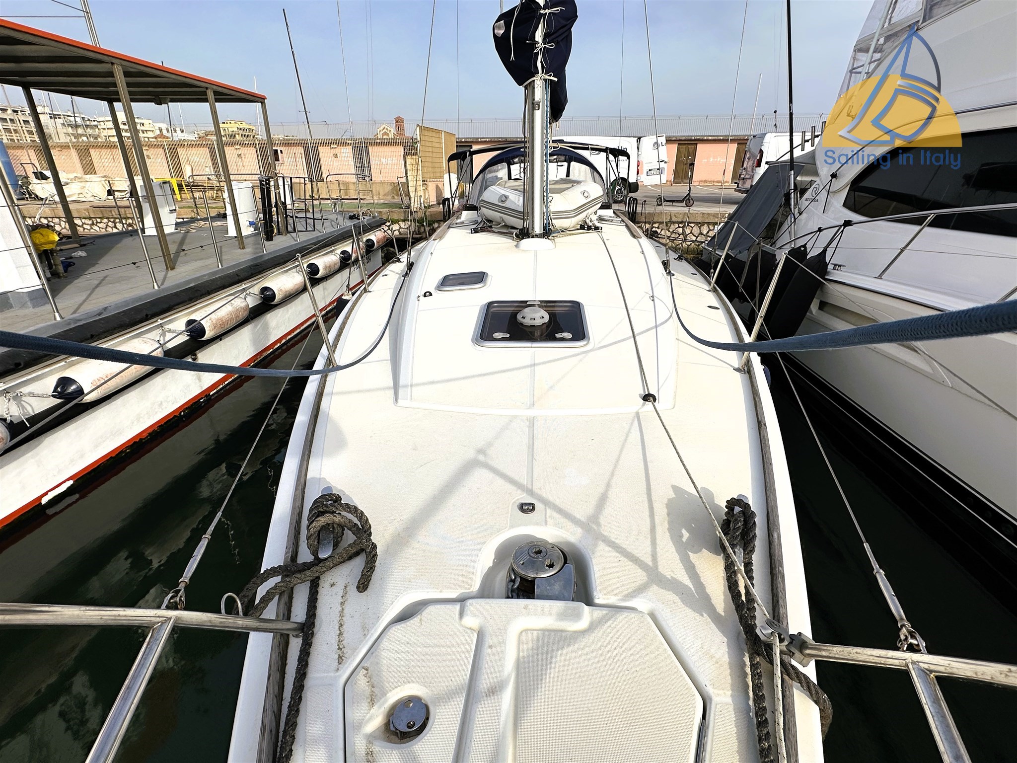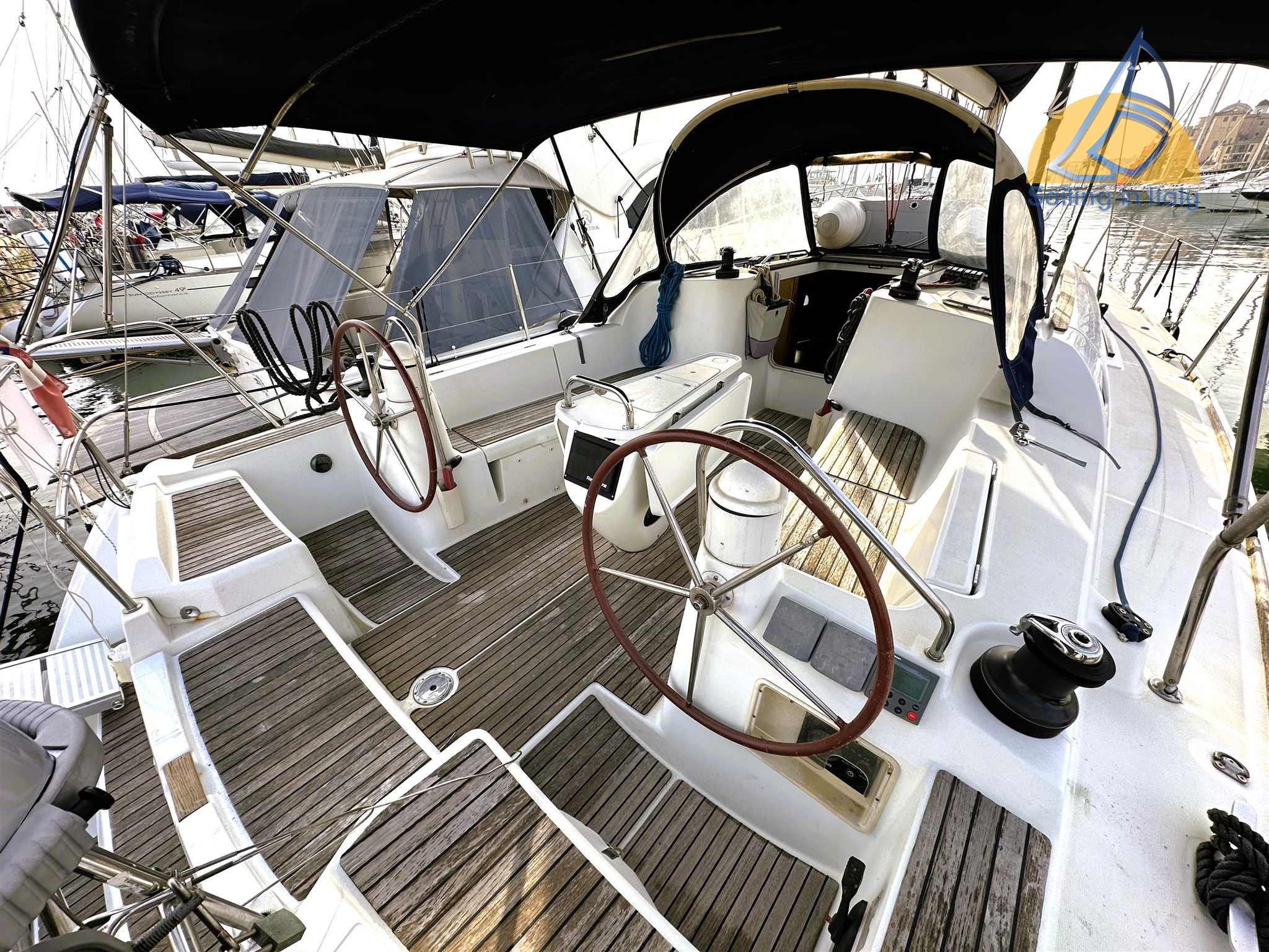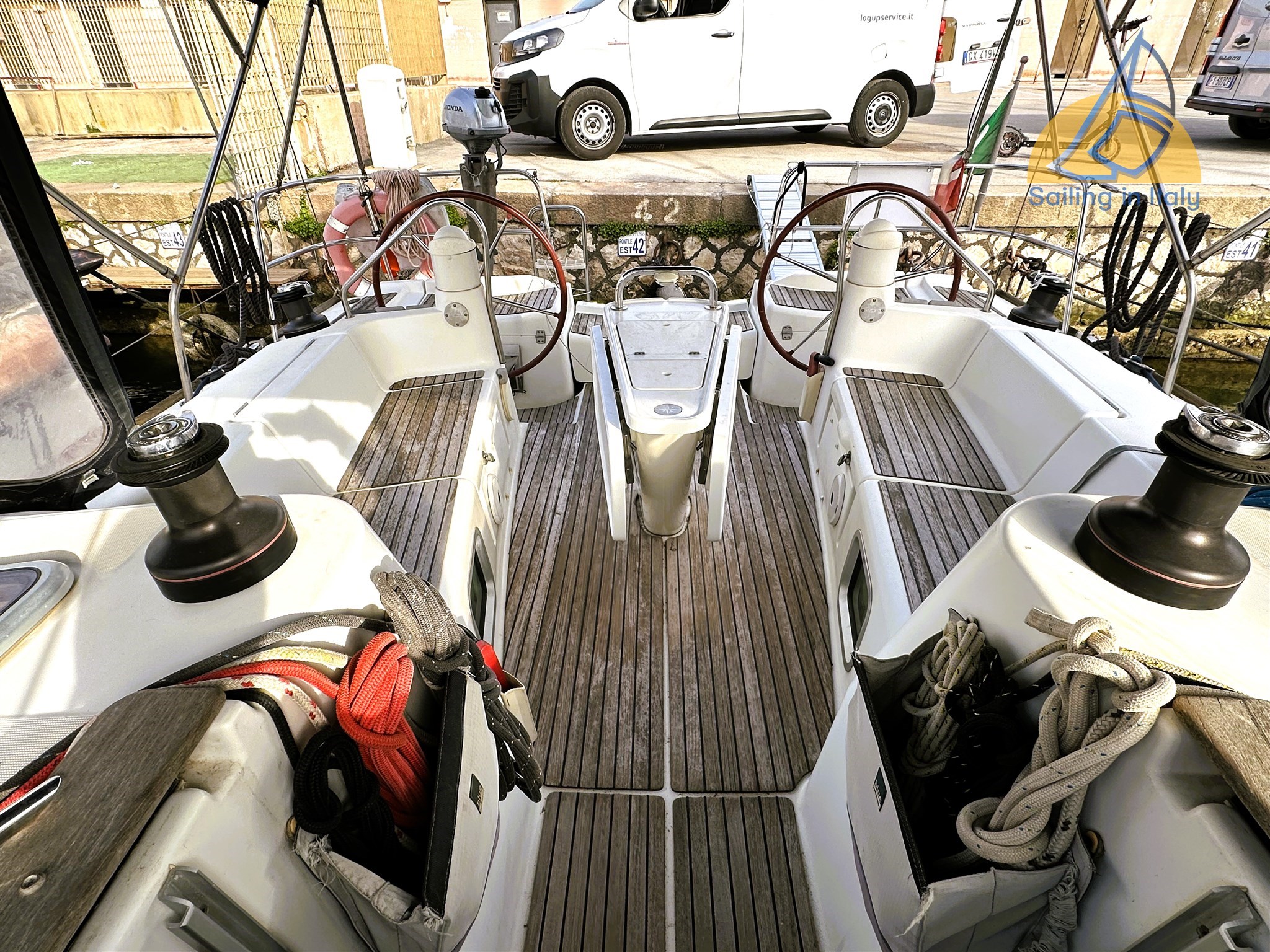 Salpa ancora elettrico Quick 1000w; pannelli solari 2x100W ; Doccia esterna calda/fredda ; bimini; cappottina; cuscineria pozzetto completa ; Winch x4 ; pompe di sentina automatiche e manuali ; Radar ; telecomando raymarine per autopilota ; Inverter 800w ; elica Max Prop pale orientabili