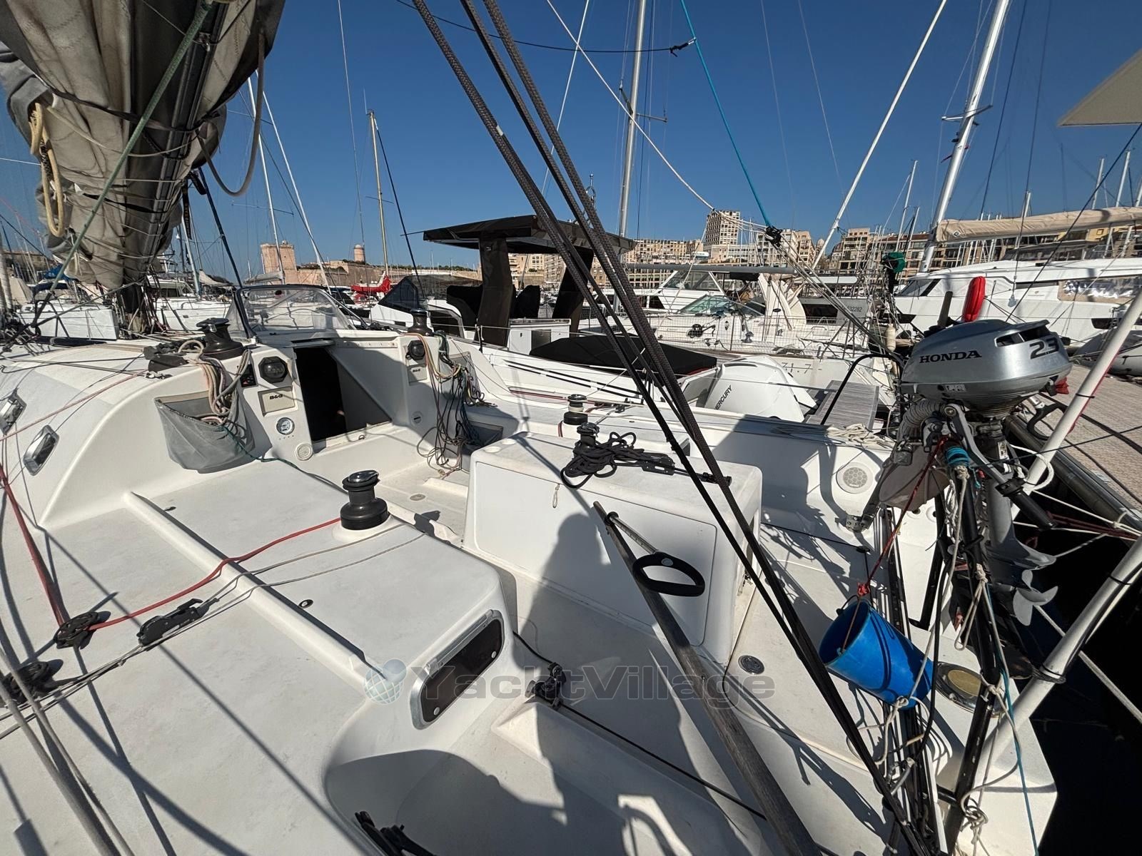 Due barre di timone per un controllo preciso durante la navigazione. Elettronica completa, incluso il radar, ideale per la navigazione al largo. Velatura performante con albero in carbonio, boma in alluminio e 7 vele da regata. Eccellente autonomia energetica: idrogeneratore Watt&Sea 600W, pannelli solari, convertitore, idraulico.