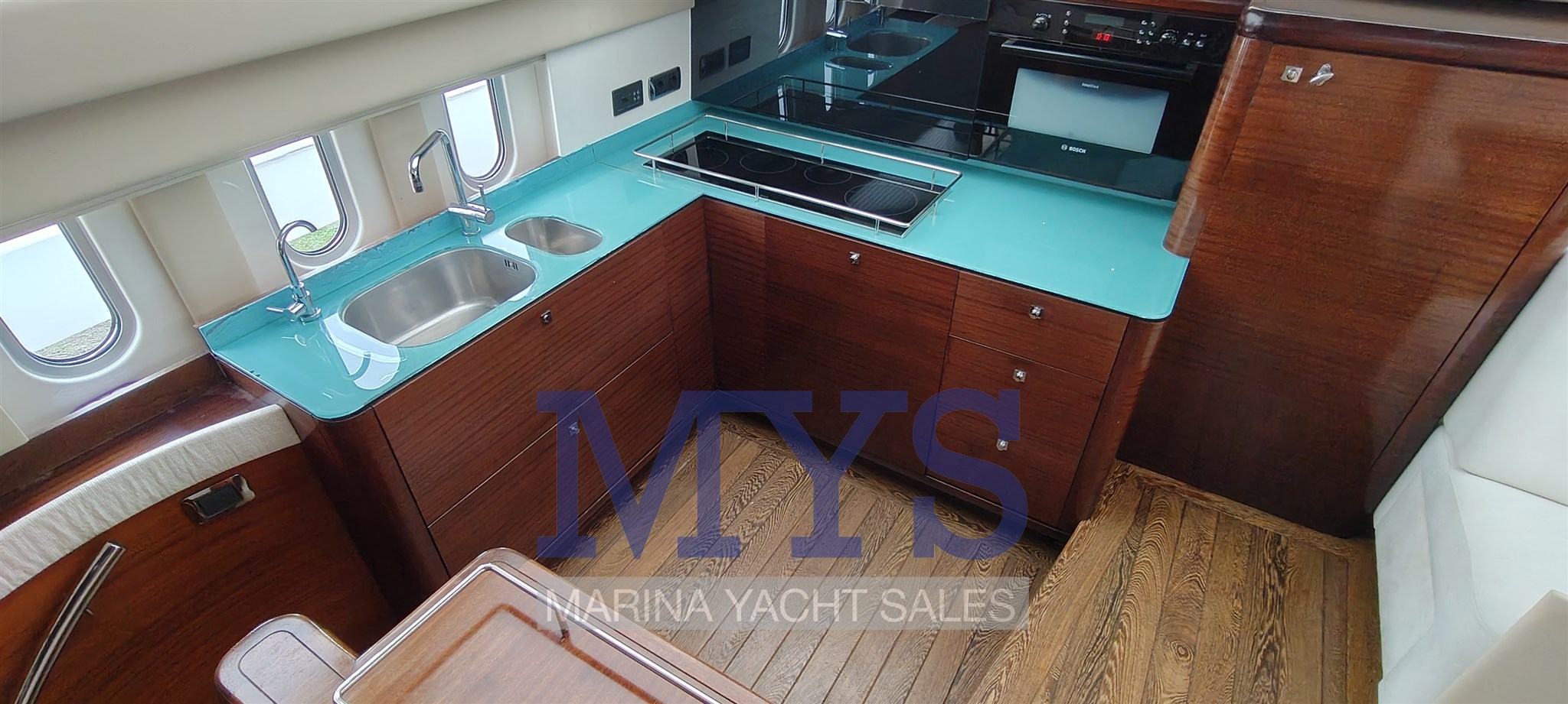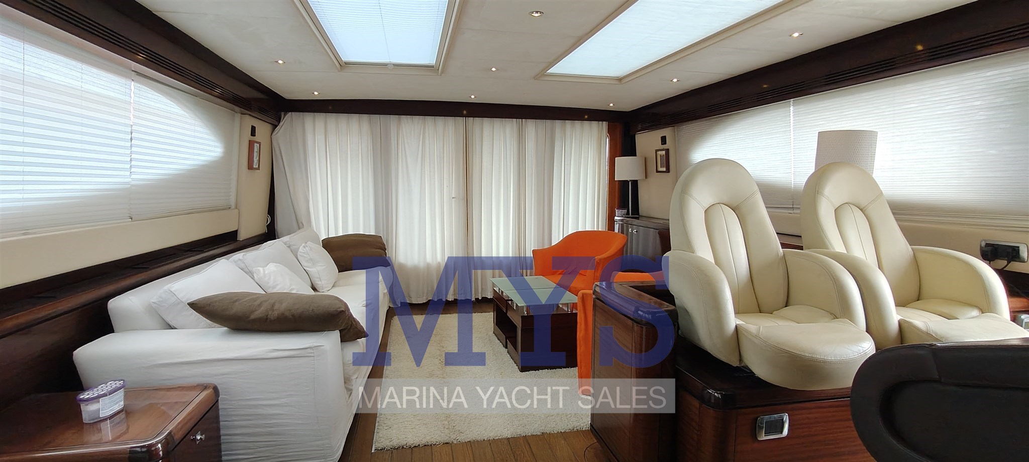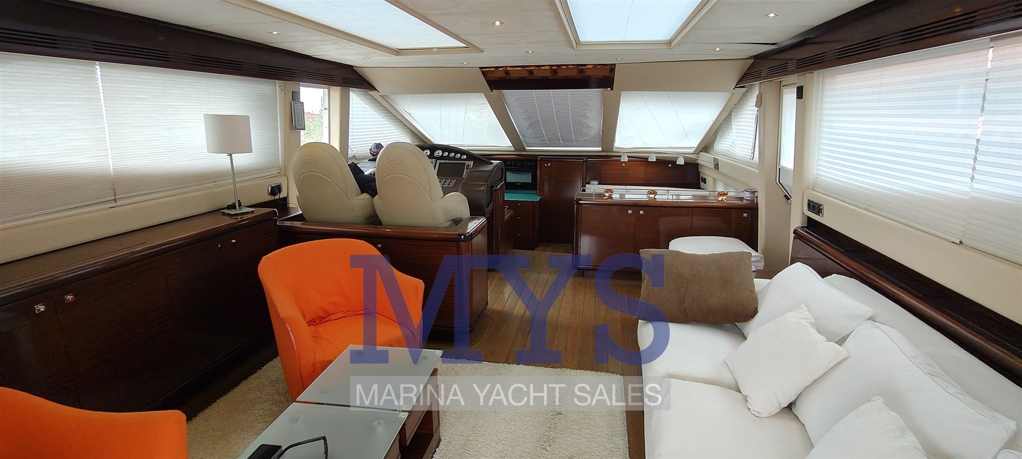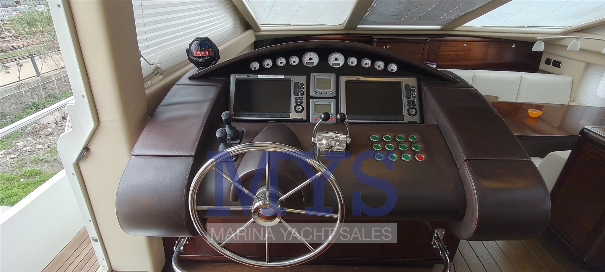 La plancia è completa di strumentazione elettronica avanzata e sistemi di assistenza alla manovra, tra cui Yacht Controller, che consente una gestione precisa e sicura anche in equipaggio ridotto.