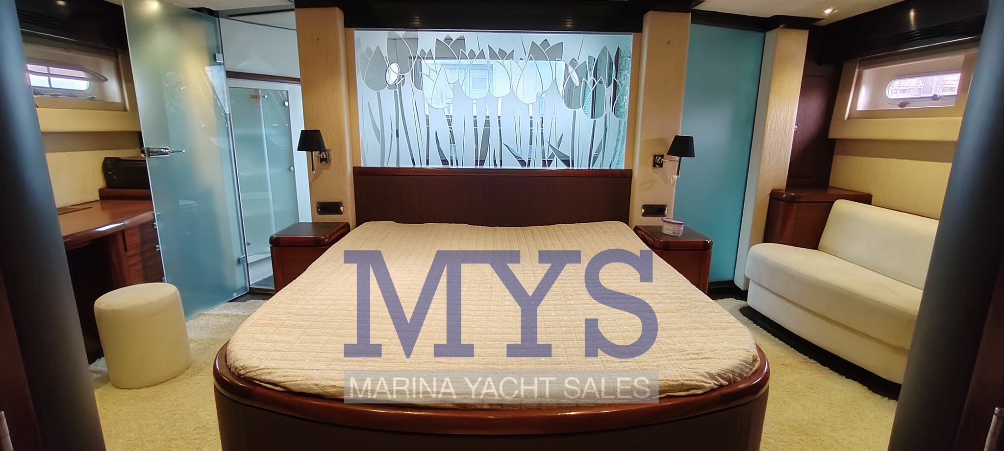 La cabina armatoriale a tutto baglio, situata a poppa, rappresenta un ambiente esclusivo con ampi spazi, area relax e bagno privato.
