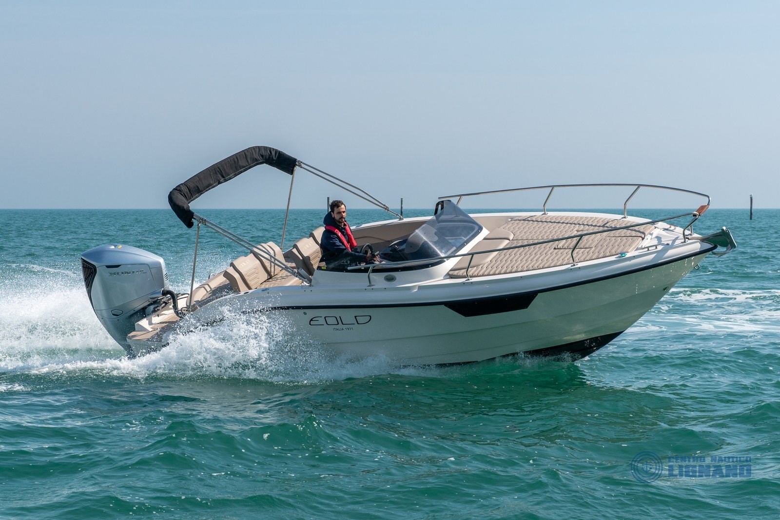 Eolo Marine 730 Day Hbs nuova 2026 subito pronta consegna in sede Centro Nautico Lignano completa di motore Honda Marine BF250 V6 edizione 2026 nuovo colore silver. Tutto nuovo in garanzia, caratteristiche tecniche lunghezza fuori tutto 7,30 mt per larghezza 2,54 mt, peso circa 1.600 Kg, portata persone 7 + 1, categoria CE-C, 2 posti letto. Colozione scafo bianco e cuscinerie complete esterne beige luxury con texture Lamborghini. Accessori compresi: frigo a pozzetto 49 lt, impianto idrico e doccia lt 45, tendalino in acciaio inox 4 archi, flexiteek plancetta, gradini e pozzetto, Finestratura in plexiglass, verricello elettrico ancora e catena, wc elettrico con impianto acque nere, passo uomo, prendisole di prua, corrimano parabrezza, musone prua, bitte, ganci di alaggio, corrimano prua, tavolo con piede, scaletta, bagno in acciaio inox, impianto carburante lt 140, impianto elettrico completo di bussola, tromba, luci di via, luce 360°, presa di corrente 12 V, pompa di sentina. Barca nuova completa che è possibile completare con altri accessori.