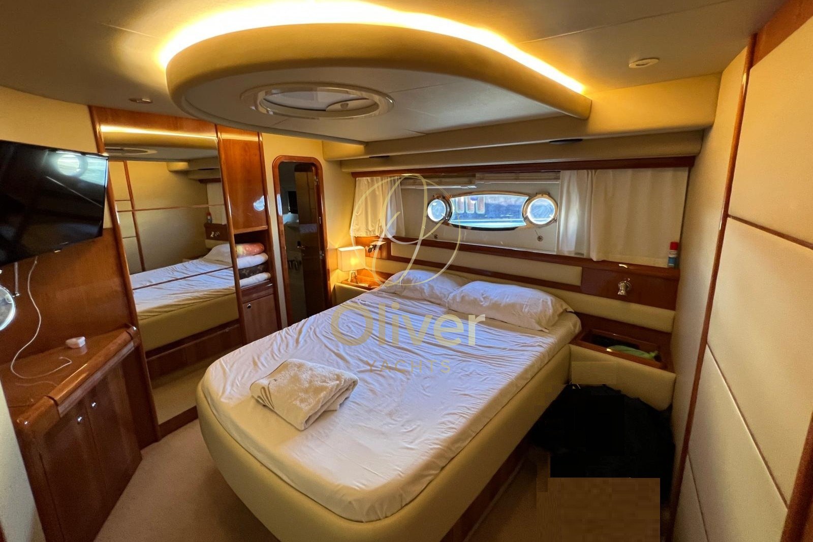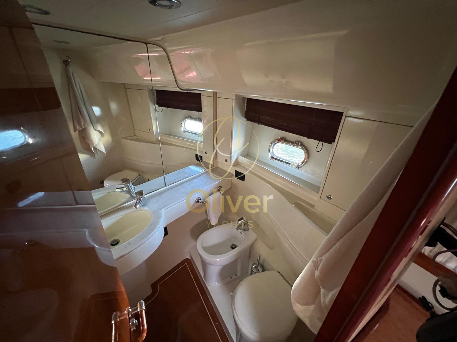 La barca si presenta in ottime condizioni generali, con motori revisionati (oltre 80.000 € di interventi dimostrabili) e numerosi aggiornamenti recenti: luci subacquee LED 2023, manette fly nuove 2023, cuscineria di prua 2024, moquette 2023, verniciatura dei mobili, lucidatura completa della coperta. Dotazioni di livello superiore come eliche di manovra a prua, aria condizionata, TV satellitare, impianto stereo Bose, due stazioni di comando rendono questa unità pronta all’uso, senza compromessi.