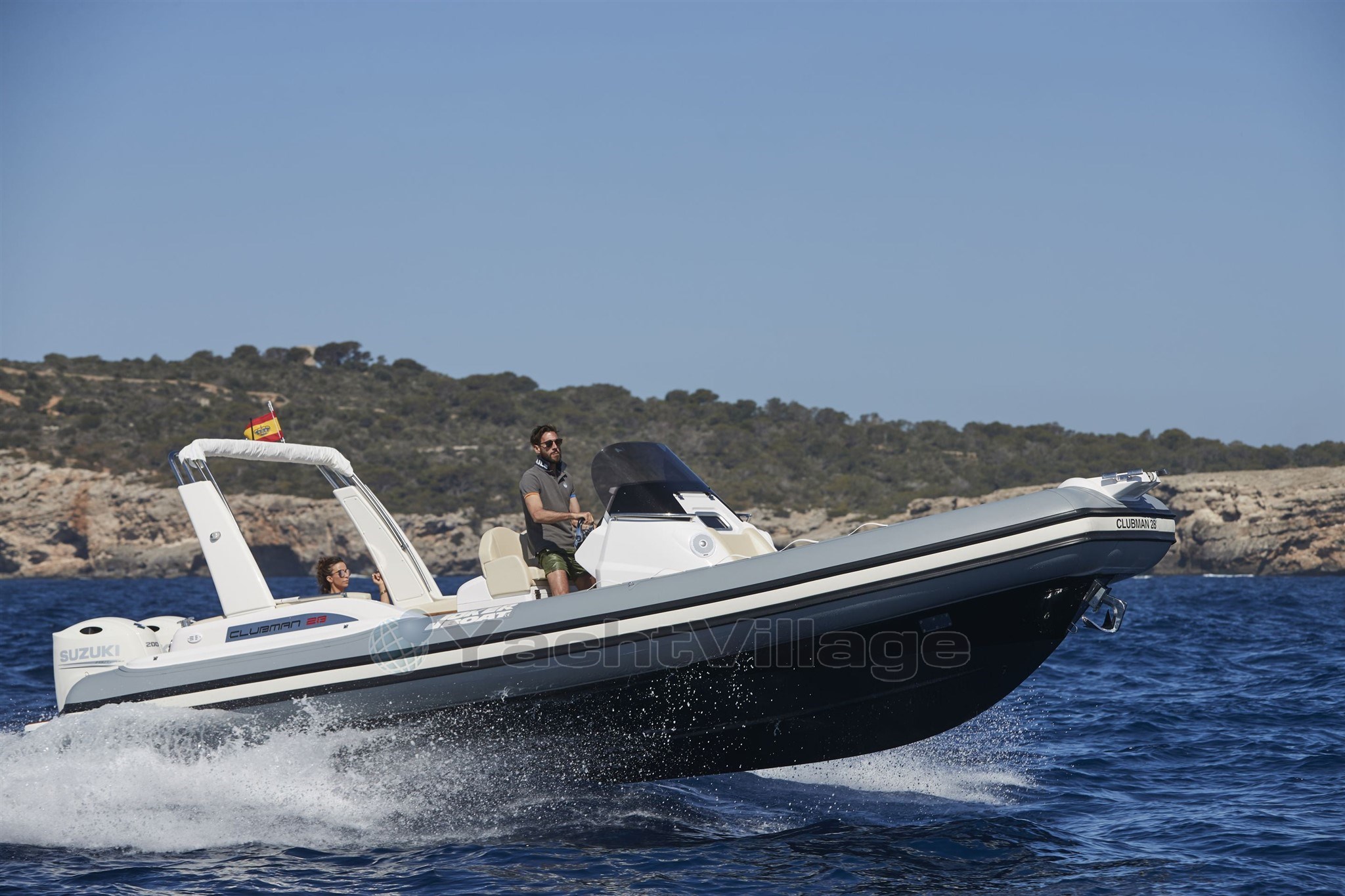 Con la sua funzionalità, le aree abitative e i comfort standard, la Clubman 28 è la barca perfetta per tutti. Lo scafo scivola dolcemente sulle onde ed è ben bilanciato per assorbire gli impatti il più possibile. È perfettamente bilanciato in termini di peso, garantendo la massima stabilità e prestazioni. Gli ampi spazi sul ponte ti permettono di muoverti facilmente e comodamente. La tenda solare è semplice da installare e offre protezione dalla mensola posteriore fino al centro della console, con la possibilità di estenderla verso la parte anteriore con un'estensione. Il bagno completa l'aspetto della barca offrendo spazio extra per aumentare la privacy a bordo.