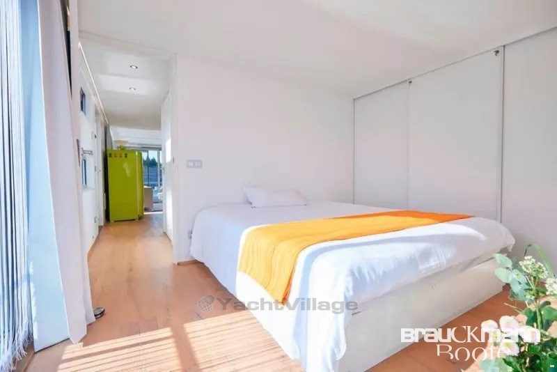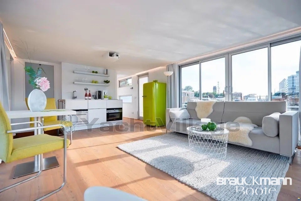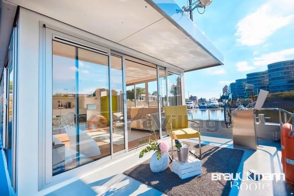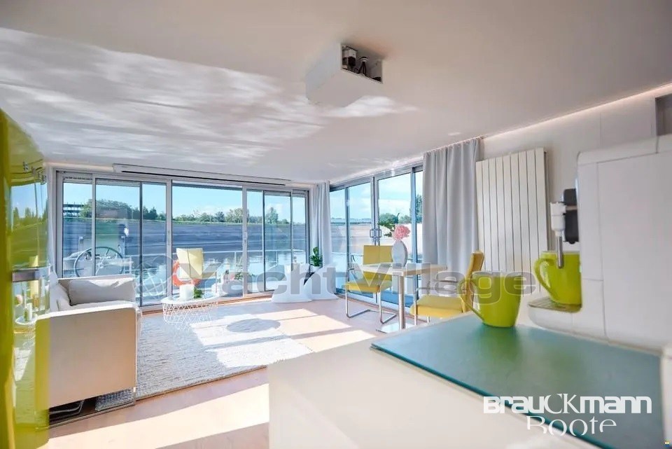 L'accesso principale alla casa galleggiante è sotto forma di una porta vetrata. Dal soggiorno si accede a