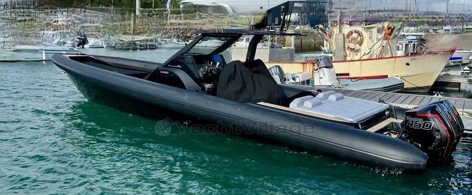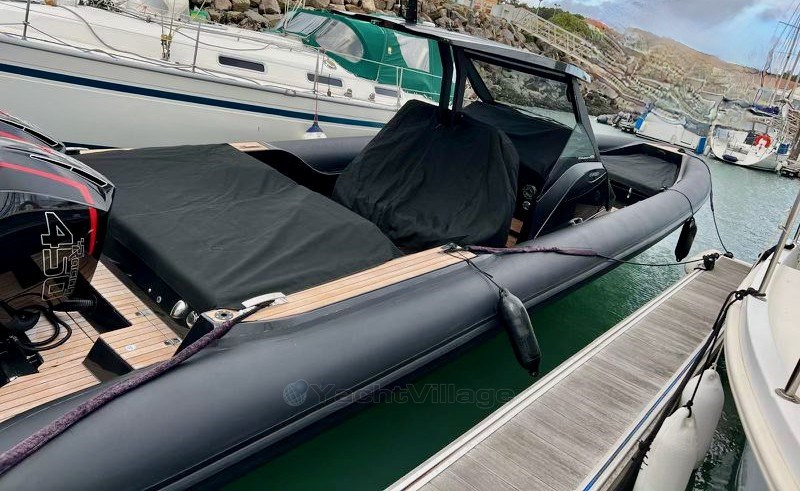 Technohull EXPLORER 40s dal 2022 sous pavillon français, prix TTC. Ce semi-rigide de luxe est equip de flotteurs en hypalon néoprène noir ORCA 1670dtex, da un gelcoat nero e da un sellerie grigio. Le pont est en teck, et le T-TOP en carbone est doté d'un pare-brise avec essuie-glace. Le bateau est également équipé de deux réfrigérateurs, d'un double écran Raymarine Axiom PRO12', d'une VHF Raymarine, et d'un système audio FUSION Apollo série avec amplificateur et caisson de basse.