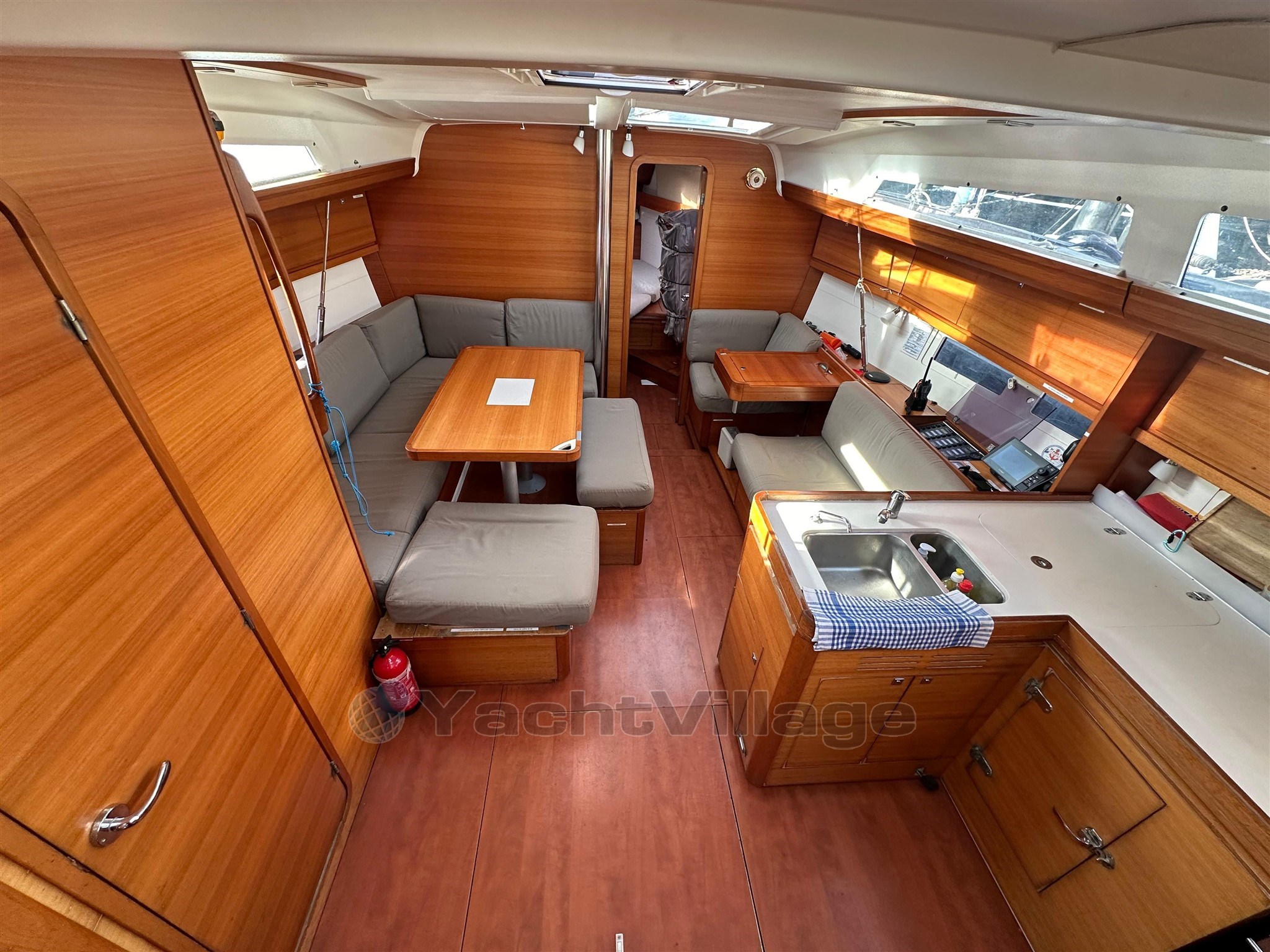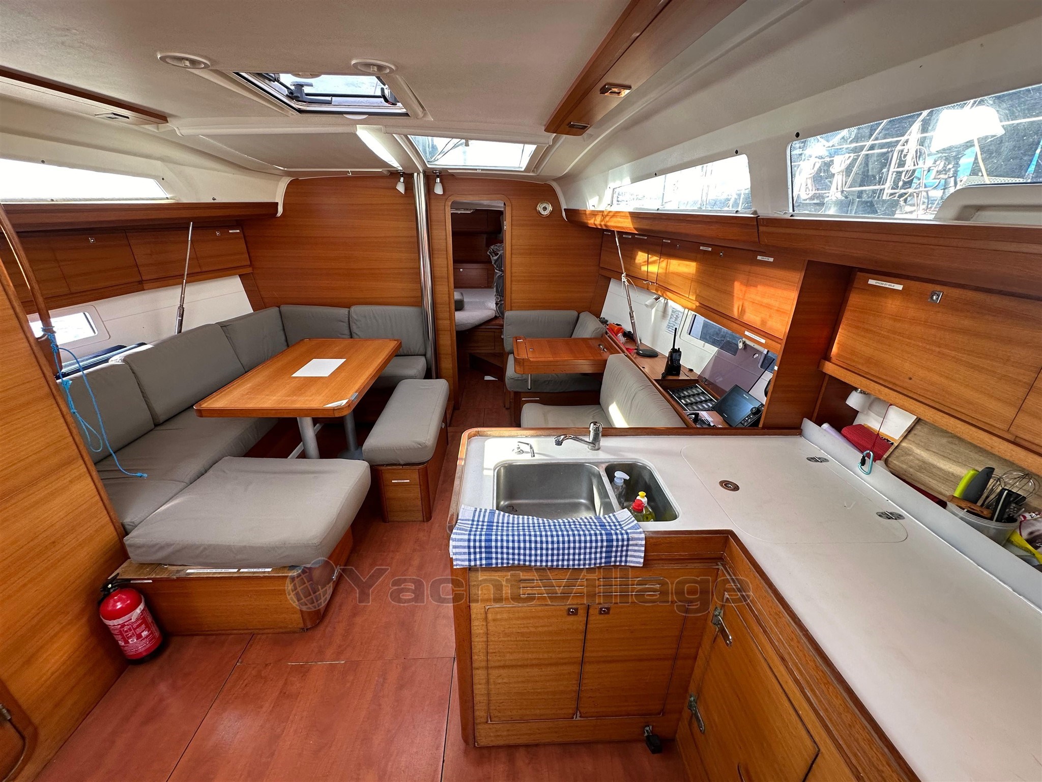 The boat offers a 3 double cabin configuration with a convertible saloon, a spacious and functional bathroom, as well as a warm interior typical of Dufour. All the inner cushions are new under covers, offering impeccable comfort. Ventilation and light are provided by numerous windows, including the one in the forward cabin that was recently replaced.
