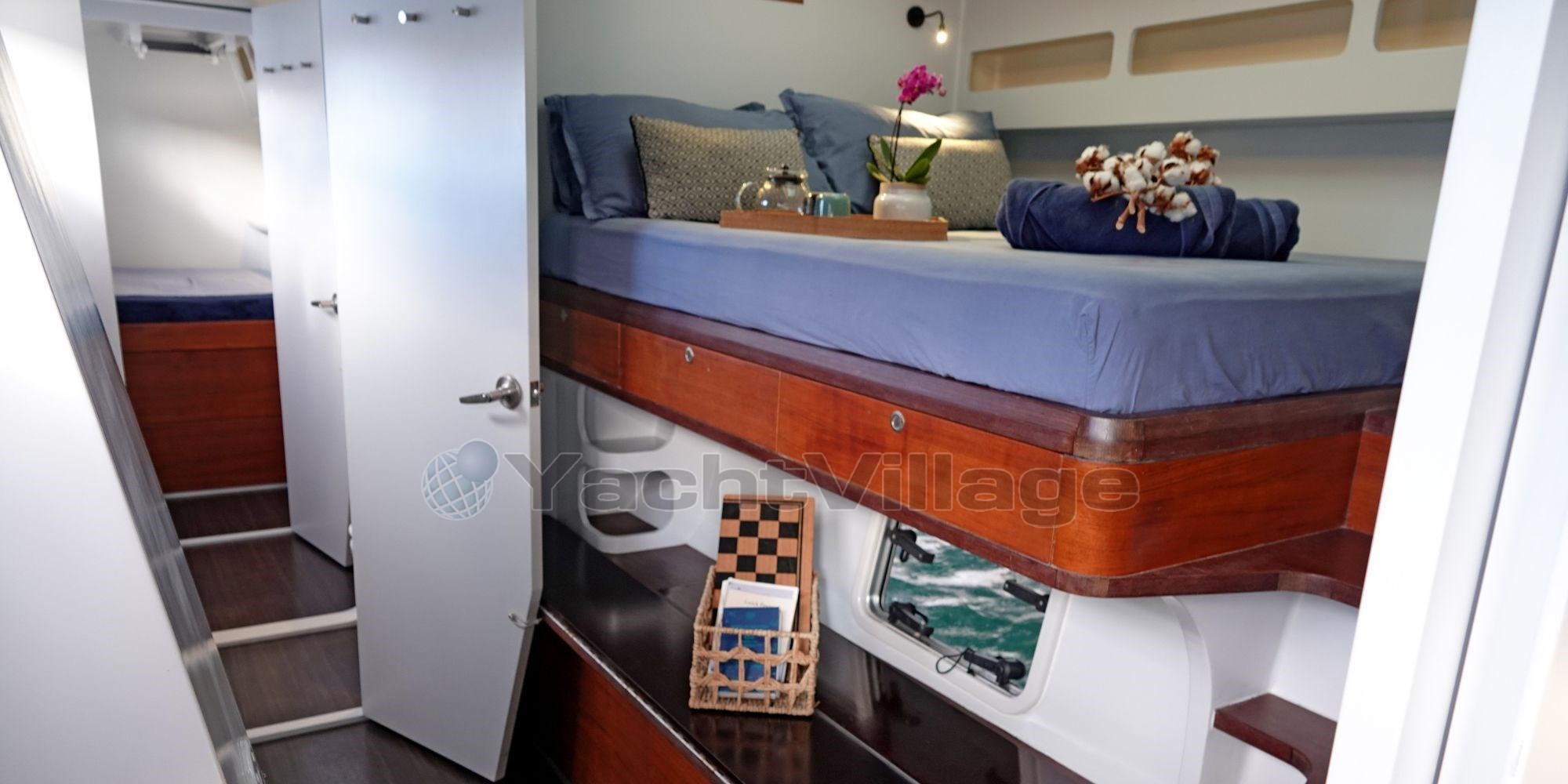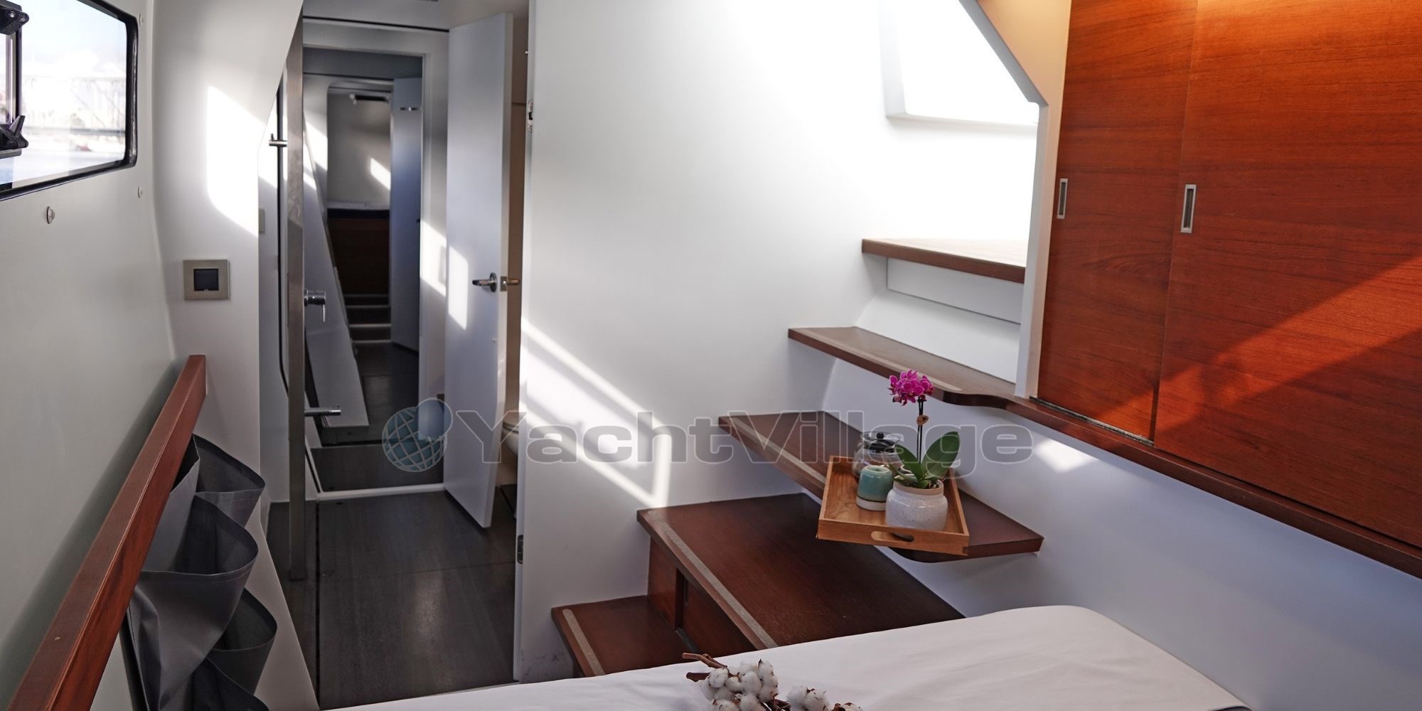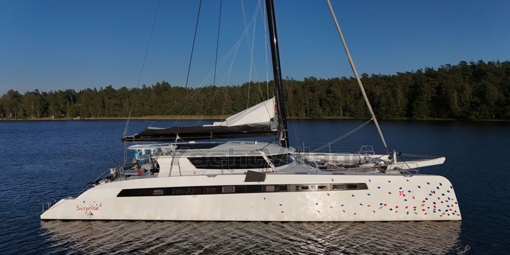 With an overall length of 20.37 meters and a generous beam of 10.15 meters, SURPRISE offers unmatched space and liveability. Constructed from lightweight composite (GRP), she combines speed and safety, making her an ideal platform for both blue-water cruising and coastal exploration. Her 26-meter rotating carbon mast by LORIMA and full set of DOYLE sails deliver superb sailing performance in all conditions.