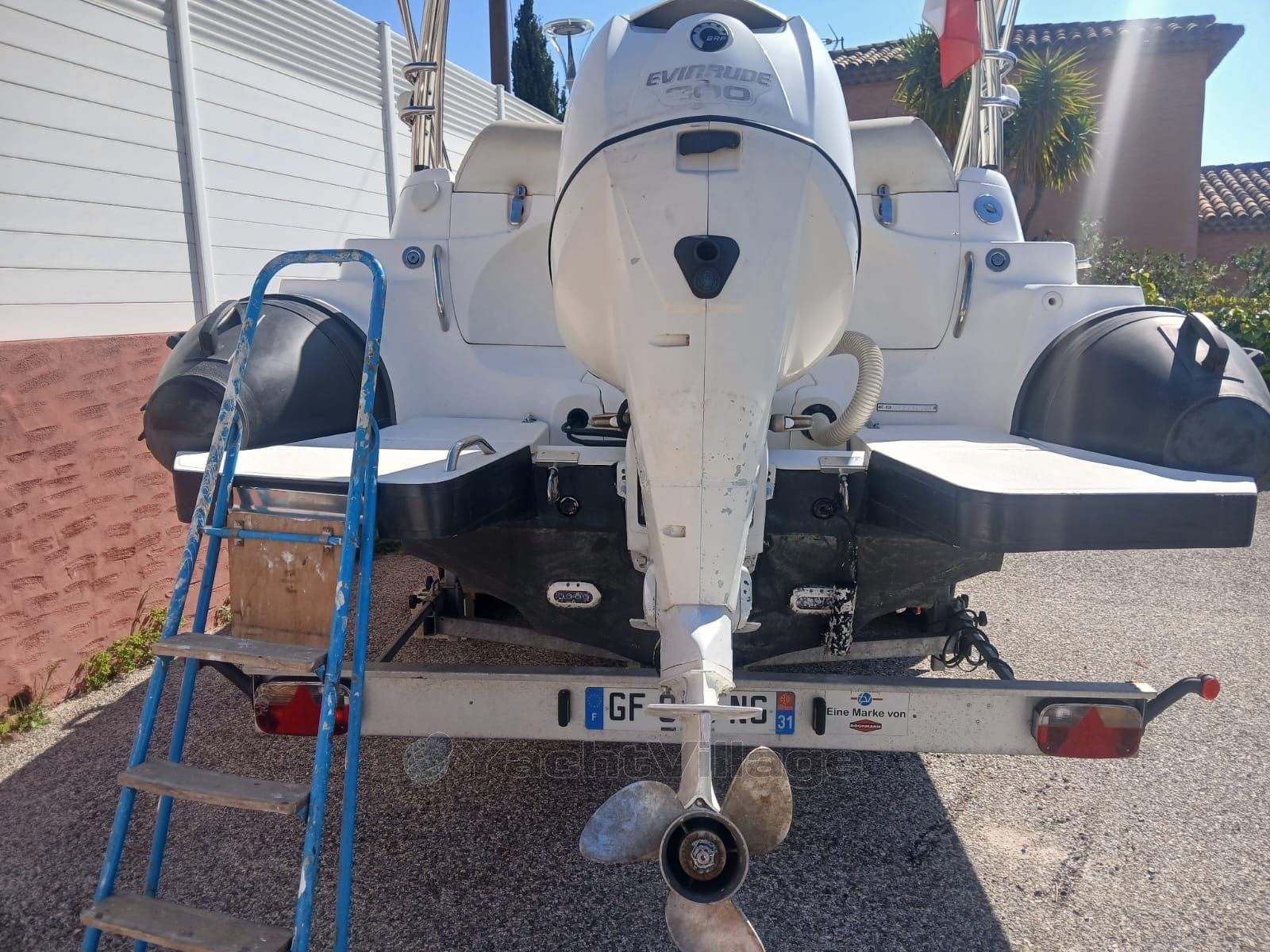 In terms of equipment, the boat is equipped with an electric windlass with remote control, facilitating anchoring manoeuvres, as well as a stainless steel anchor and chain. The trailer is included in the sale, which allows for flexible use and simplified storage.