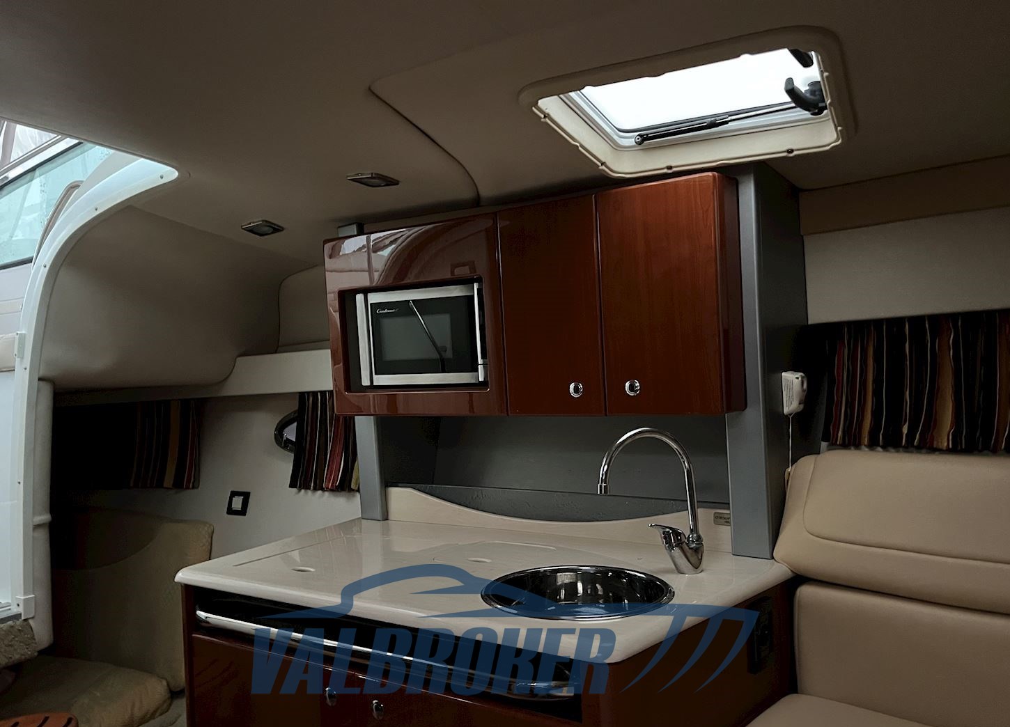Историческая американская верфь, синоним качества и скорости!! Спортивный, но удобный, учитывая ширину 3,30 м. Высококачественный материал для сборки. Прочный и безопасный. Двигатели 2x V8 496 Mercruiser бензиновый. Спальные места 4 и санузел. Оборудован кондиционером горячего/холодного воздуха, радаром. Единственный владелец.