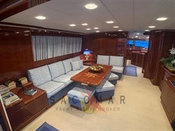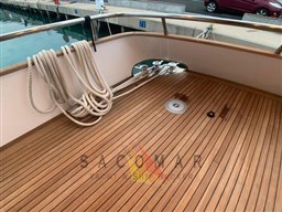 Обслуживание двигателя + генератора, чистка теплообменников, новые аккумуляторы двигателя, стружка и повторная обрезинка тика (кокпит, боковые палубы, флайбридж), капитальный ремонт трюмных насосов и системы кондиционирования воздуха