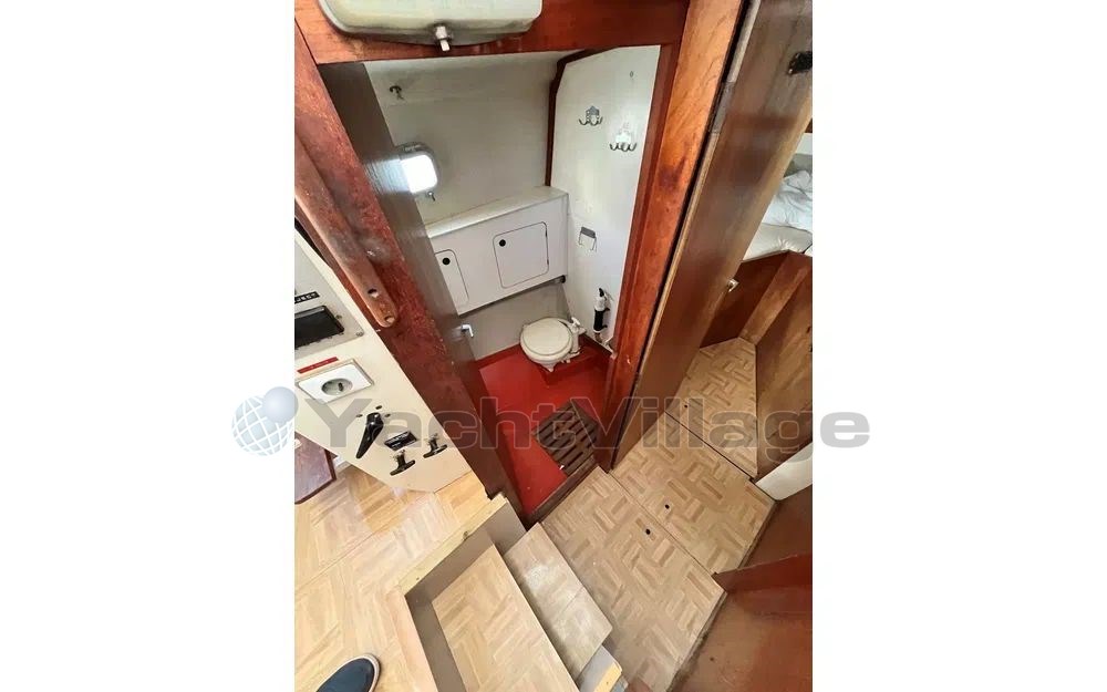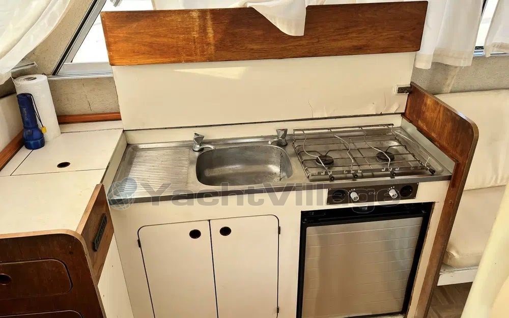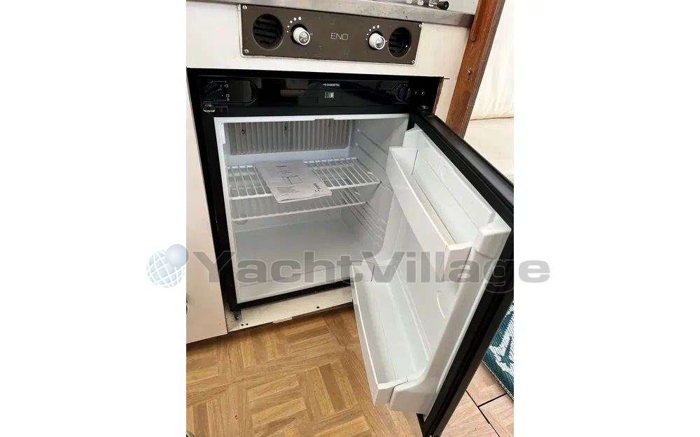 In terms of equipment, the Atlantique 32 is very well equipped: refrigerator, electric bilge pump, 220V circuit, marine toilet, bimini, electric windlass, depth sounder, GPS, autopilot, and much more. You will also appreciate its kitchen equipped with stove and sink, ideal for preparing your meals at sea.