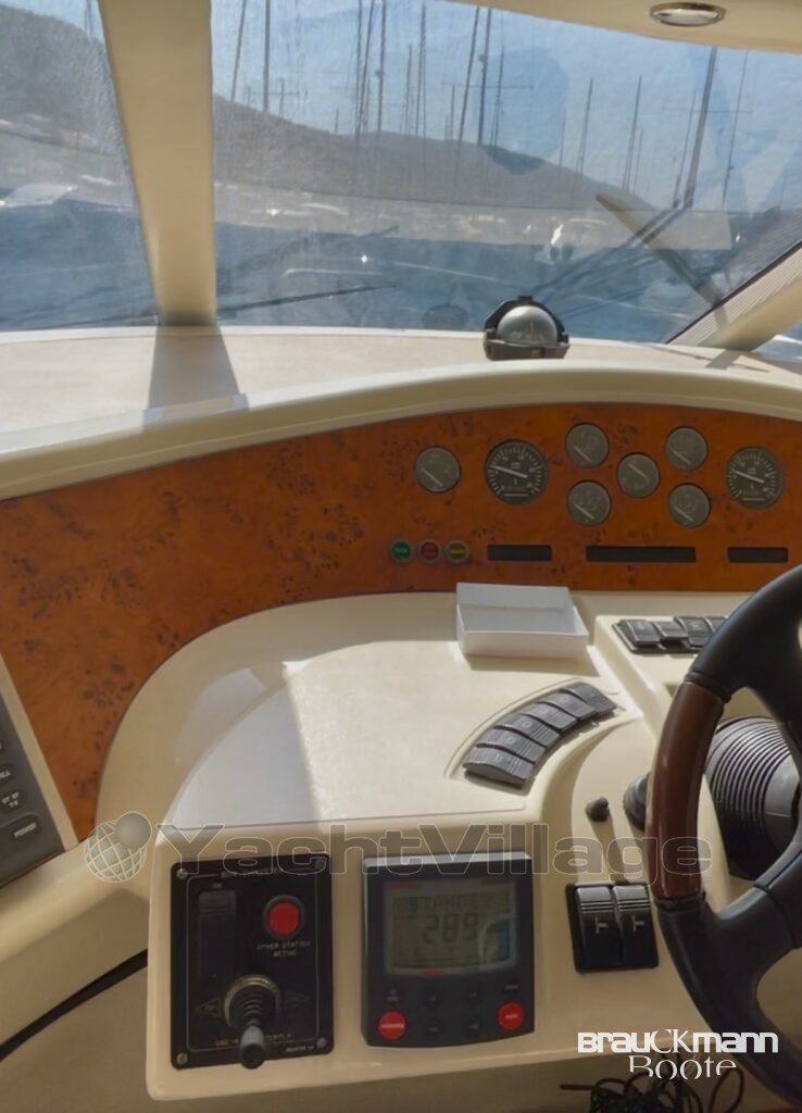 A special highlight of this Fairline Squadron 52 is the spacious flybridge. It offers a second helm station, comfortable seating, spacious sunbathing areas and a barbecue area – ideal for relaxing hours on board, convivial evenings in the harbour or unforgettable trips in the sunshine.