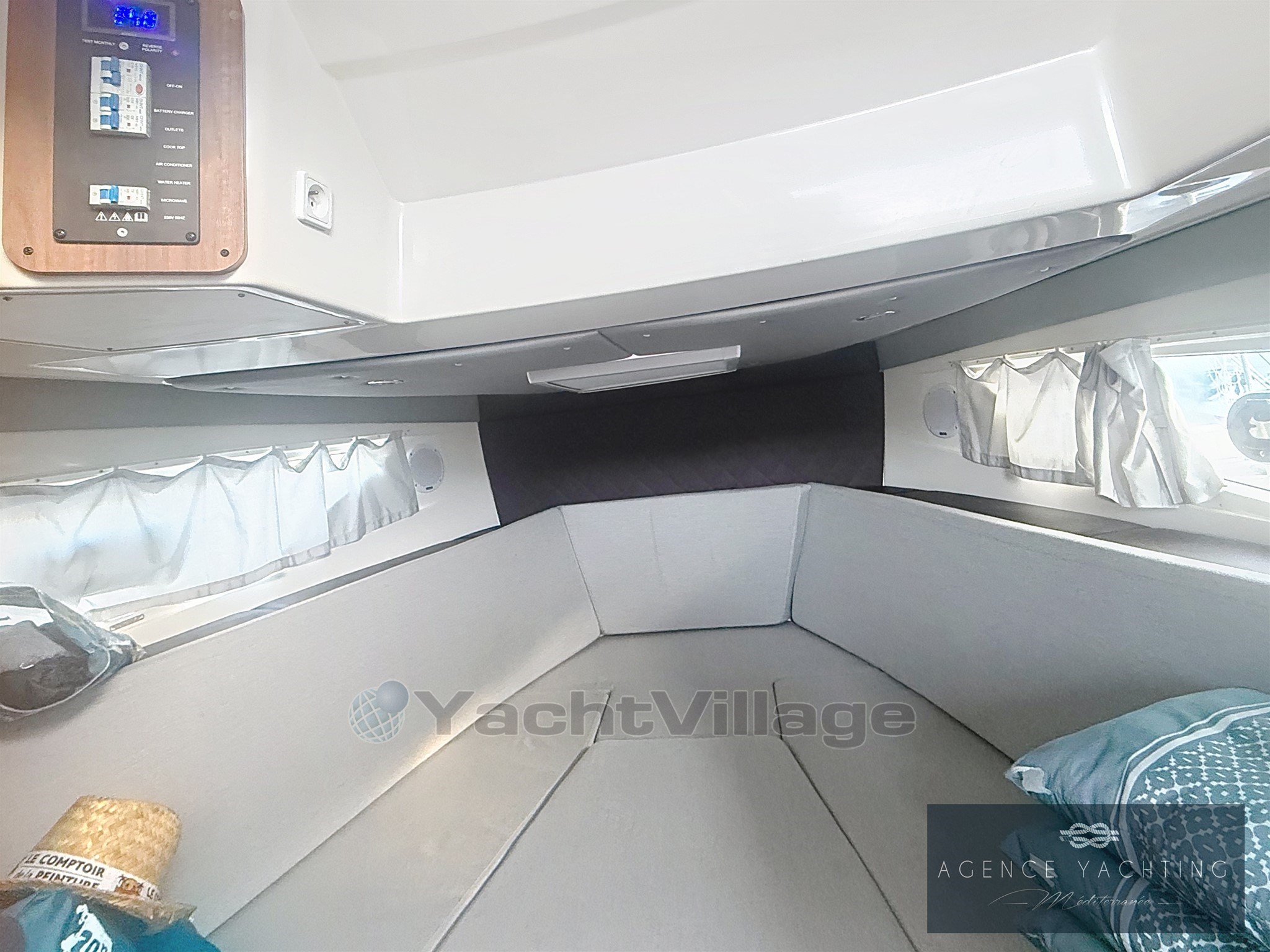 On board, the comfort is worthy of much larger units. The interior layout allows you to take full advantage of extended outings thanks to four berths, a marine toilet, a shower with hot pressurized water, as well as a perfectly integrated interior refrigerator.