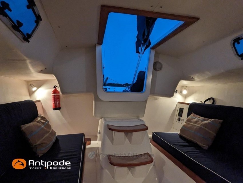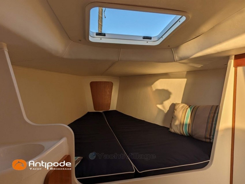 J 100, 2008, Volvo D1 13 B, 12 hp (195.8 hrs), 2 bunks in saloon + 2 bunks in forward peak, 1 manual toilets + sink, Forward pushpit, stanchions and lifelines, Teak deck passageway, Teak slatted cockpit floor, Winter covering, Carbon mast, keel stepped, aluminium boom, Classic standard main sail - BX Incidences 2020, Main sail mast track + batten cars, Genoa roller furling with above deck drum - Harken, Furling genoa - BX Incidences 2020, Asymmetric spinnaker - Europ Sails, Adjustable backstay (hydraulic - actually on service), Cockpit tiller autopilot - Raymarine ST 1000 2018 (connections renewed in 2024), Navigation system - Tacktick, Wind pack - Tacktick, 2 repeaters at mast foot - Tacktick, 1 wireless remote control - Tacktick, Portable Icebox IGLOO, 220 V shore power + battery charger, Engine battery, Service batteries, Fresh water manual pump, No safety equipments, Dinghy, Located Brittany. For more information or to make an appointment for a visit, contact : Jean-Baptiste Lemaire +33 6 10 25 00 03 - jb@antipode-yachts.com