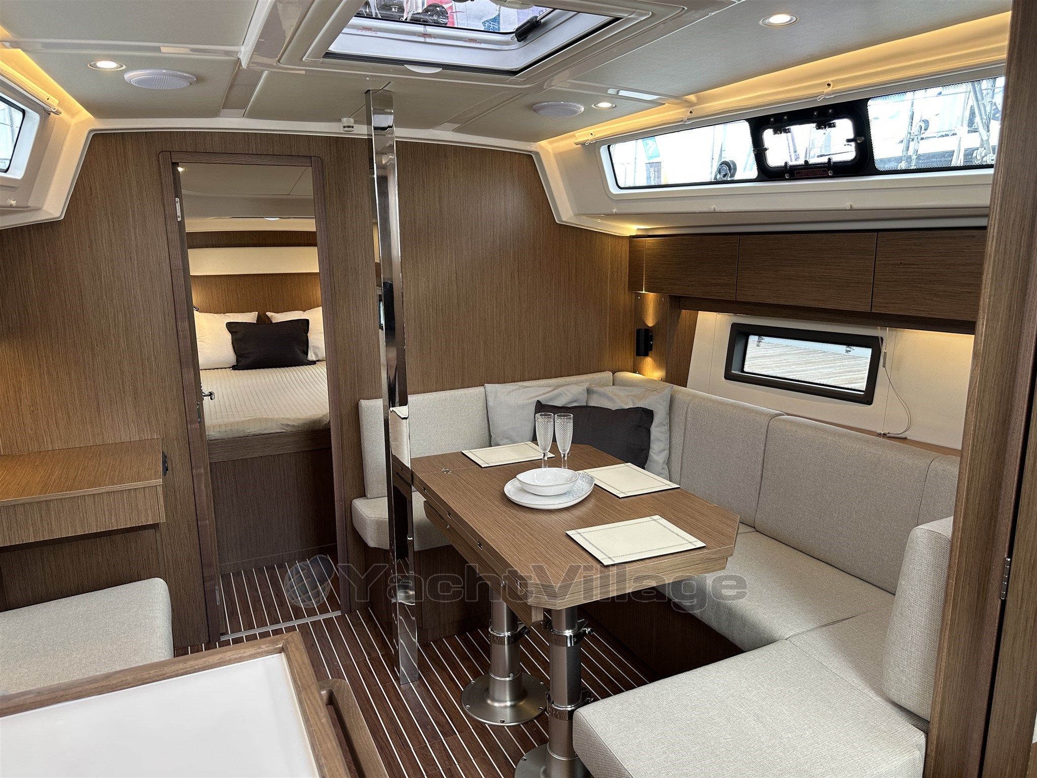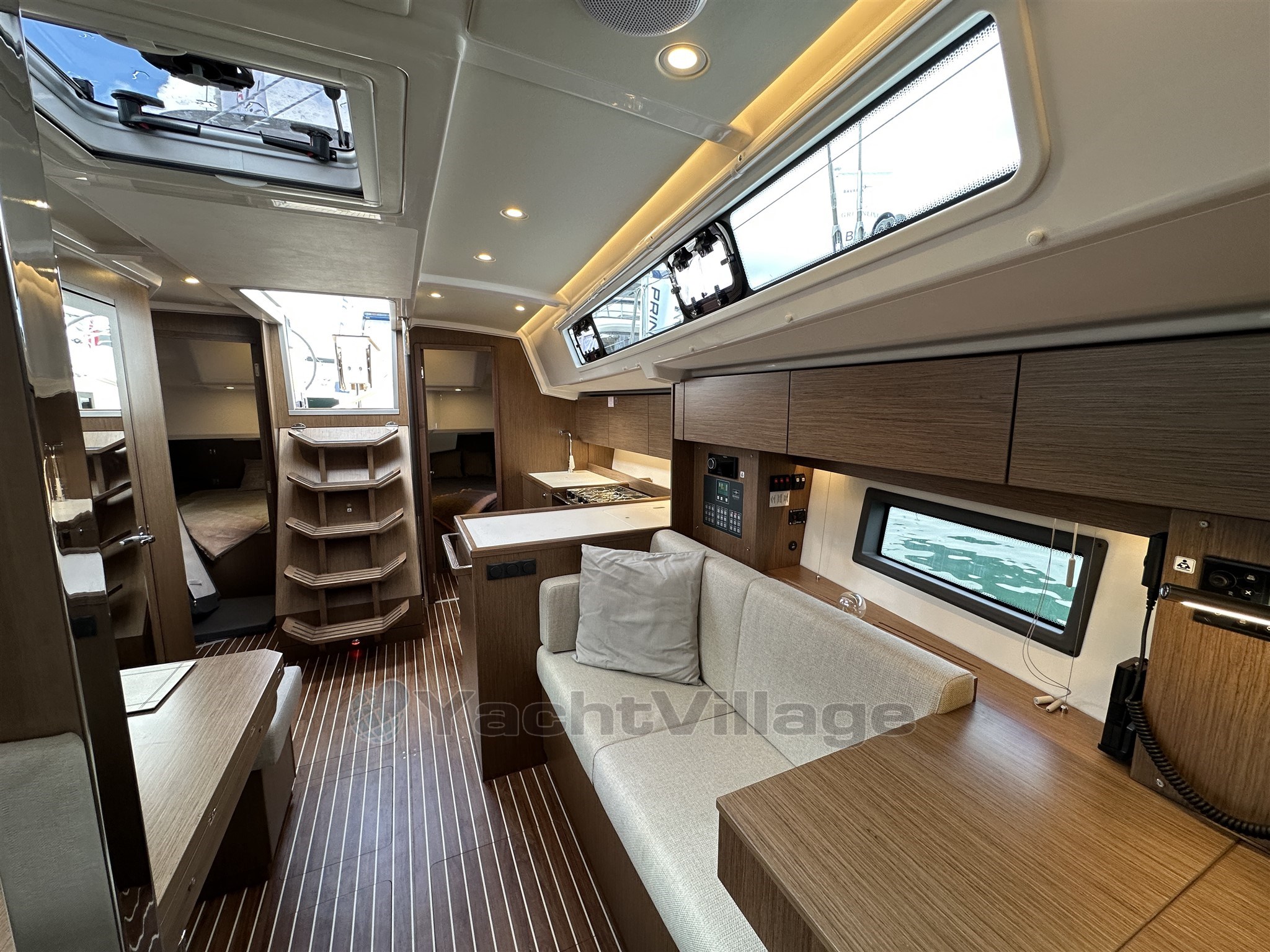 below, she offers three generous double cabins with stylish white oak