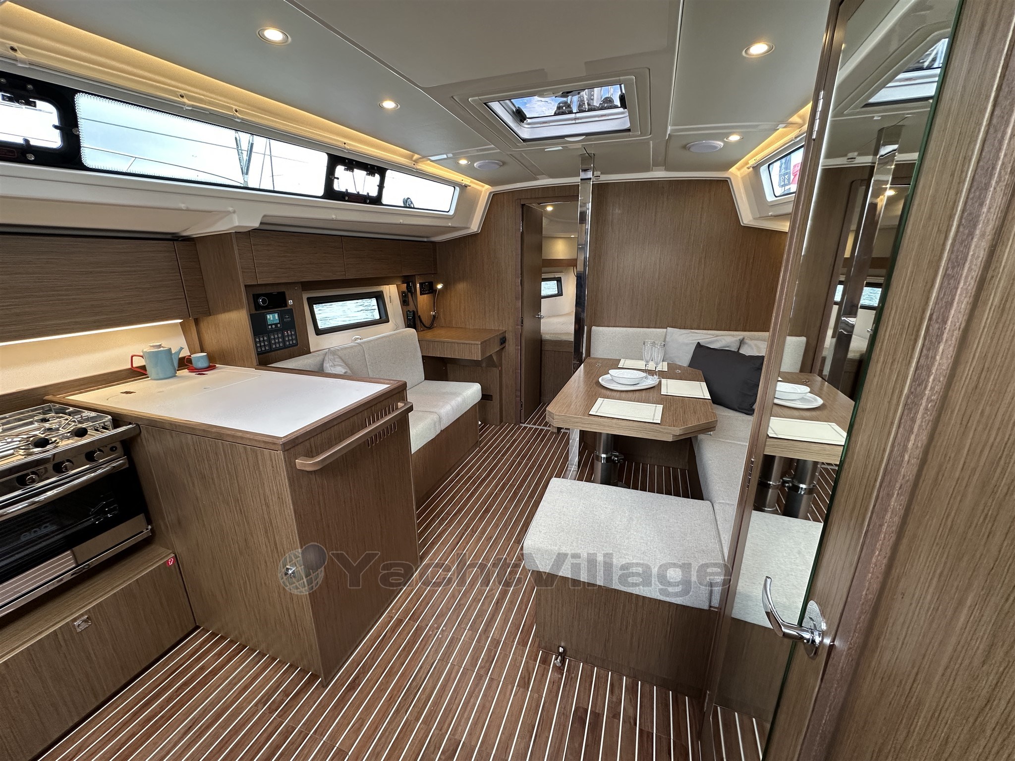 carpentry and elm flooring providing a very light interior. The cockpit features composite steering
