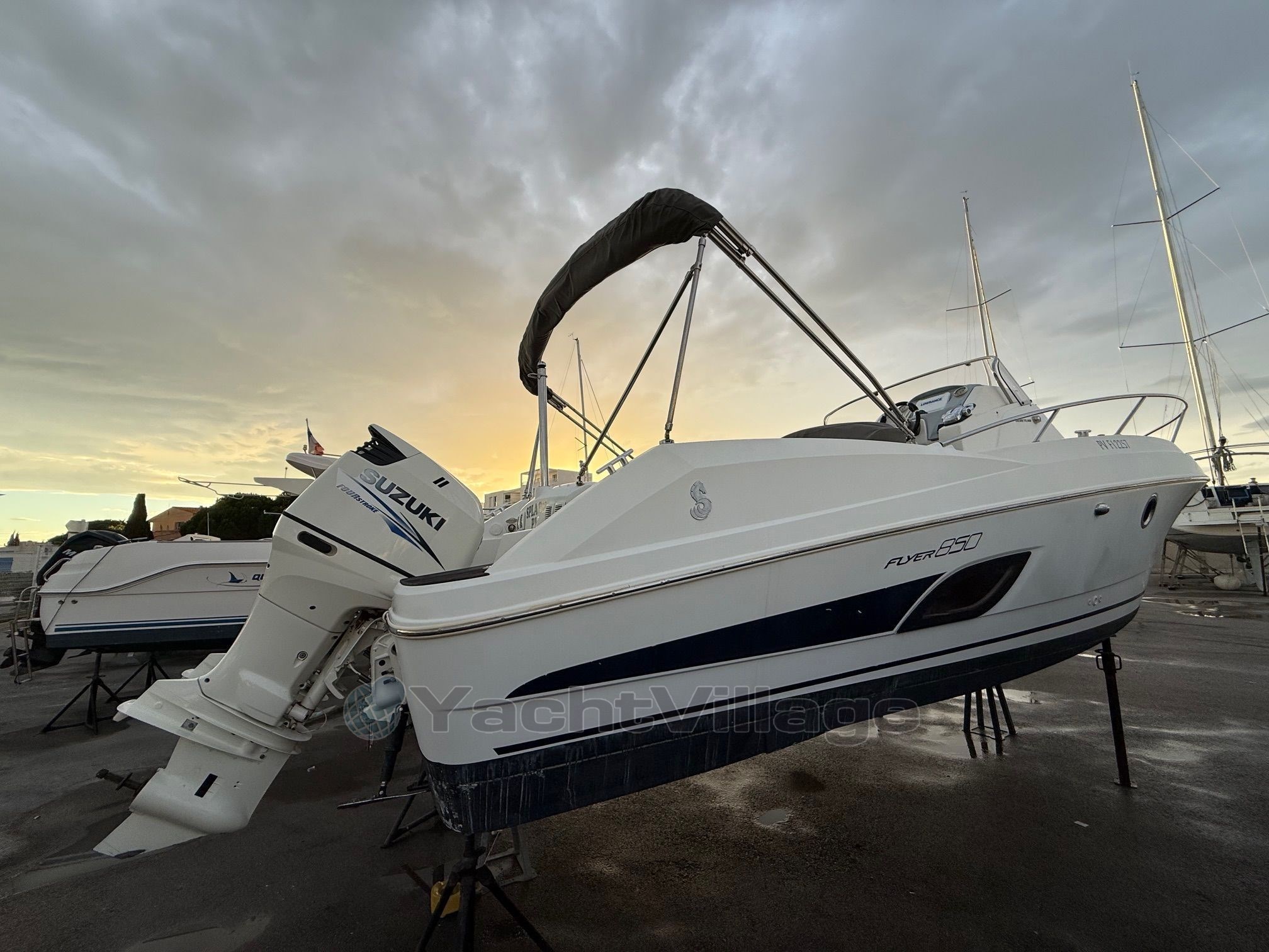 Beneteau Flyer 850 является 8,25 м Моторная лодка построено в 2014. Швартовка в (Франция) доступен в продаже на 49 900 EUR на YachtVillage.net. лодка, Лодки, лодка В продаже, Лодки используемый, Моторная лодка В продаже, Моторная лодка используемый, Моторные лодки В продаже, Моторные лодки используемый, Ranking 6 / 10