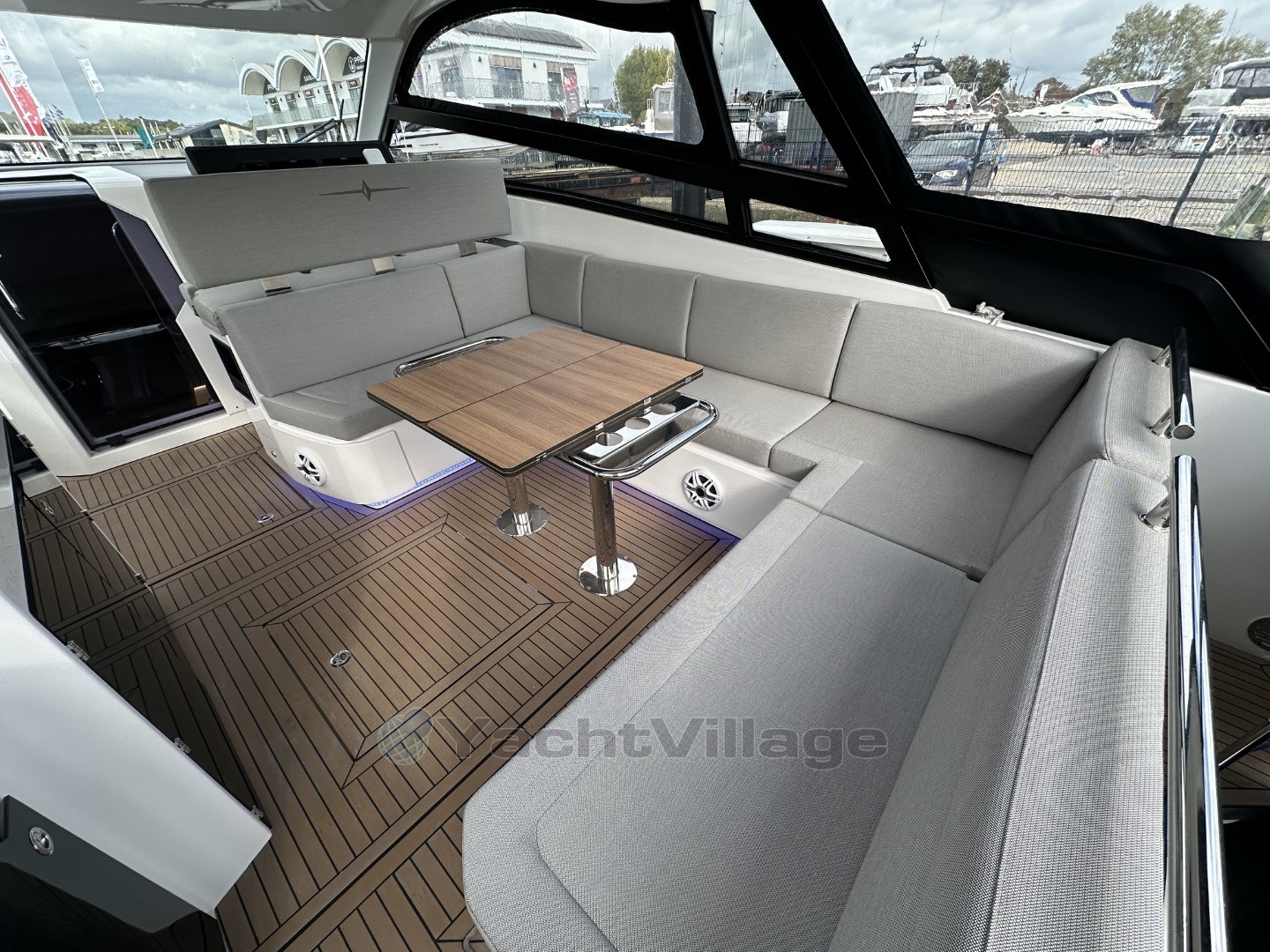 Light package exterior with indirect lighting under stern settee and helm